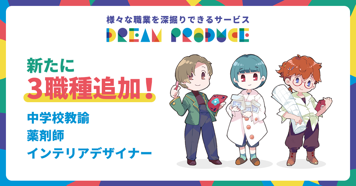 子ども一人ひとりの個性を分析して、自分の適職に出会える職業深掘りWebサービス『Dream Produce』が新たに3職種のコンテンツを追加