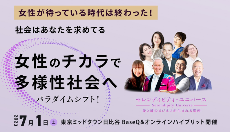 このような現状を受け、「女性を含めたすべての人が生きる喜びを感じる社会の実現と、子どもたちや次世代にビジネスを通じてその社会を継承したい。」という思いから立ち上がったのが主催の2名。7/1(土)東京ミッドタウン日比谷 BASE Qにてリアルとオンラインでイベントを開催、リアル会場では150名が参加予定です。