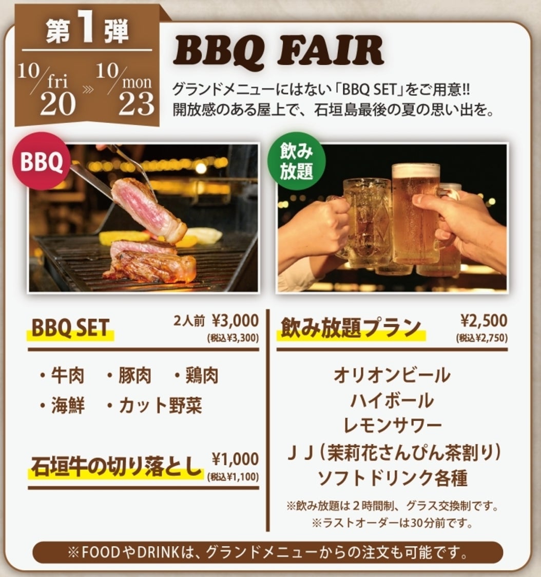 【第一弾】BBQ FAIR 10/20(金)~10/23(月)の4日間限定