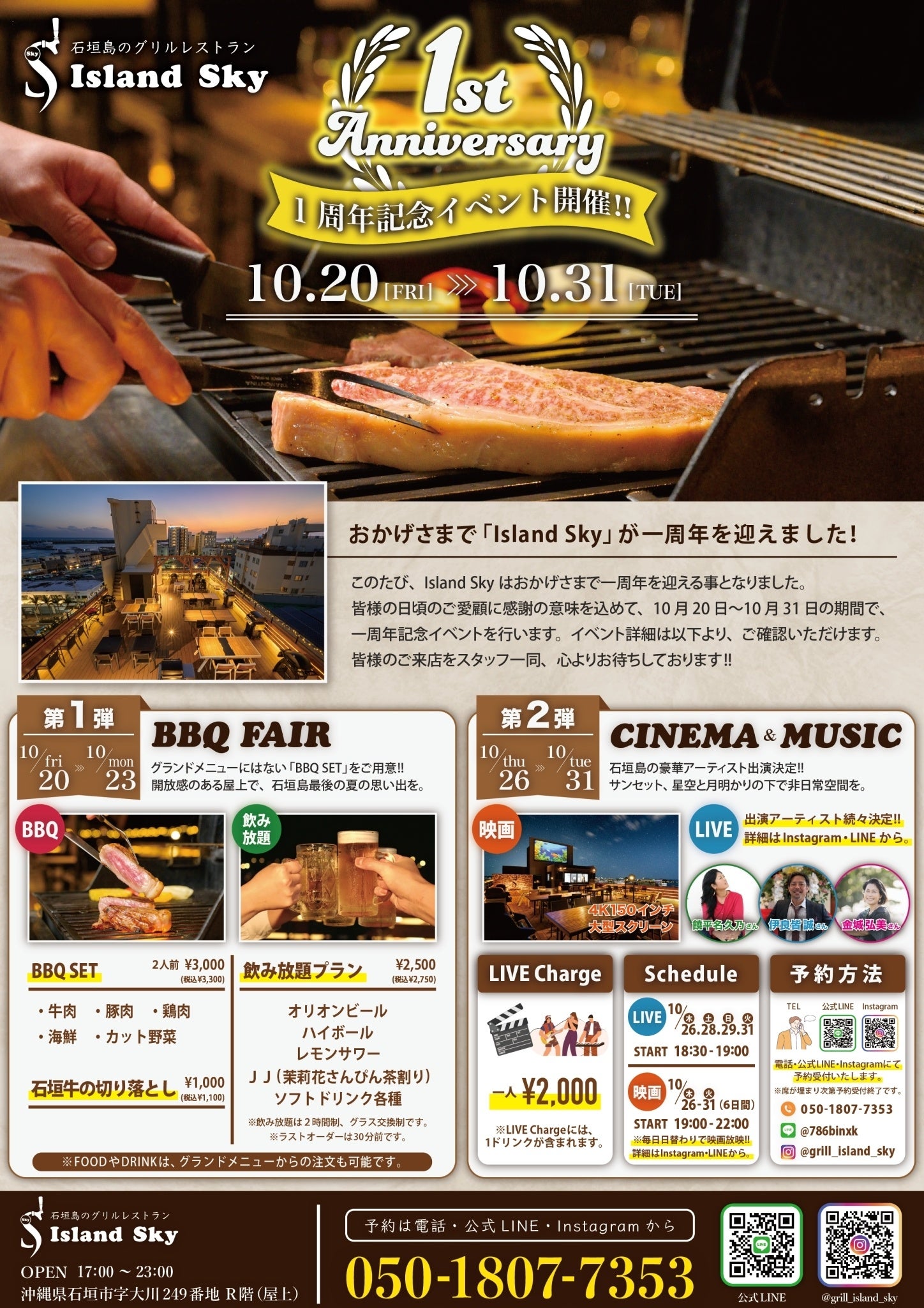 【1周年記念イベント×石垣島】石垣島のルーフトップダイニング「Island Sky」にて、2023/10/20(金)~10/31(火)の期間限定で1周年記念イベントを開催決定!