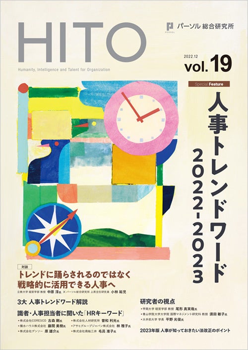 今回発表した「人事トレンドワード2022-2023」は、12月5日発刊の当社機関誌「HITO」vol.19にて特集しています。立教大学教授の中原淳氏と当社上席主任研究員の小林祐児との対談をはじめ、選ばれた3大ワードについての解説ほか、人事に関わる様々な立場の方々がいま注目しているキーワードを取り上げています。また、パーソル総合研究所のウェブサイトでは、機関誌に掲載した対談・インタビュー記事の長尺版をお読みいただけます。