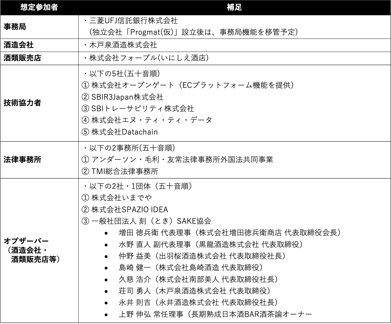 三菱UFJ信託銀行株式会社(取締役社長: 長島 巌(いわお)、以下「三菱UFJ信託銀行」)、SBIトレーサビリティ株式会社(本社:東京都港区、代表取締役:輪島 智仁(ともひと)、以下「SBIトレーサビリティ」)は、三菱UFJ信託銀行株式会社が主催する「デジタルアセット共創コンソーシアム」(略称「DCC」、会員企業数179社)において、個々の商品等との明確な紐づけが可能で、「本物」であることを客観的に明示可能な「トレーサブルNFT」の基盤創りと、日本酒業界の課題解決を目的とした「日本酒トークン」の発行を目指す「日本酒トークン・ワーキンググループ(WG)」を設置し、検討を開始することをお知らせします。オープンゲートは本WGにおいてECプラットフォーム技術協力者として参画します。