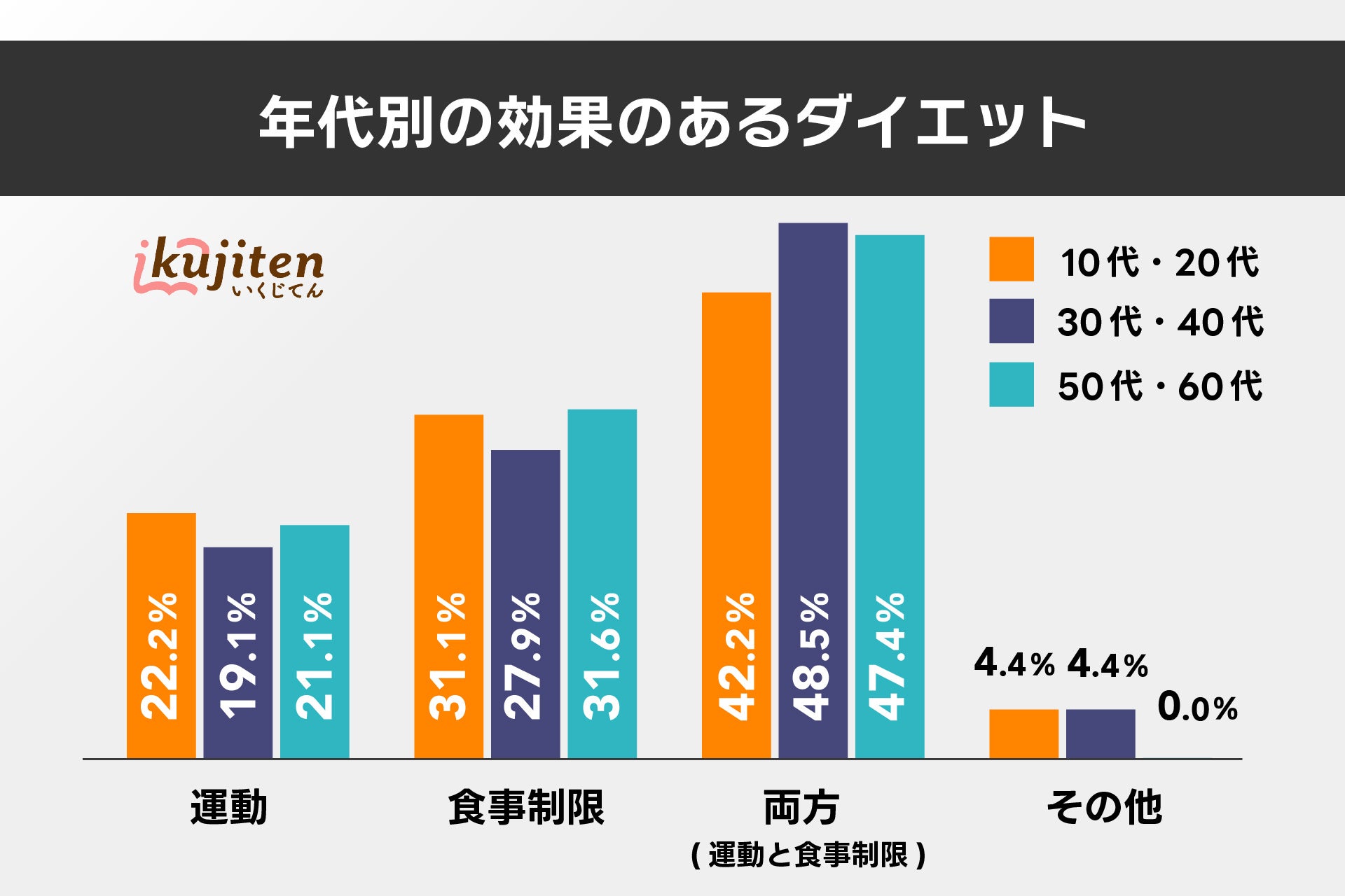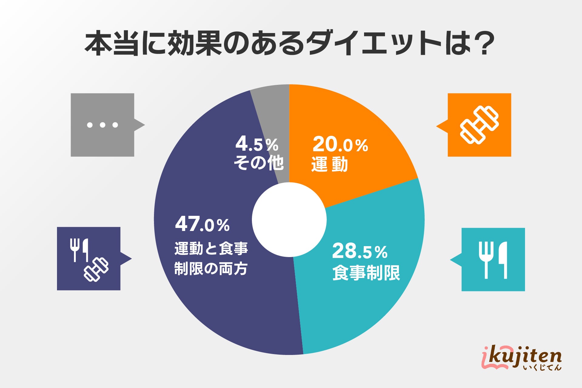「本当に効果のあるダイエット」は、運動・食事制限・両方などに分かれました。