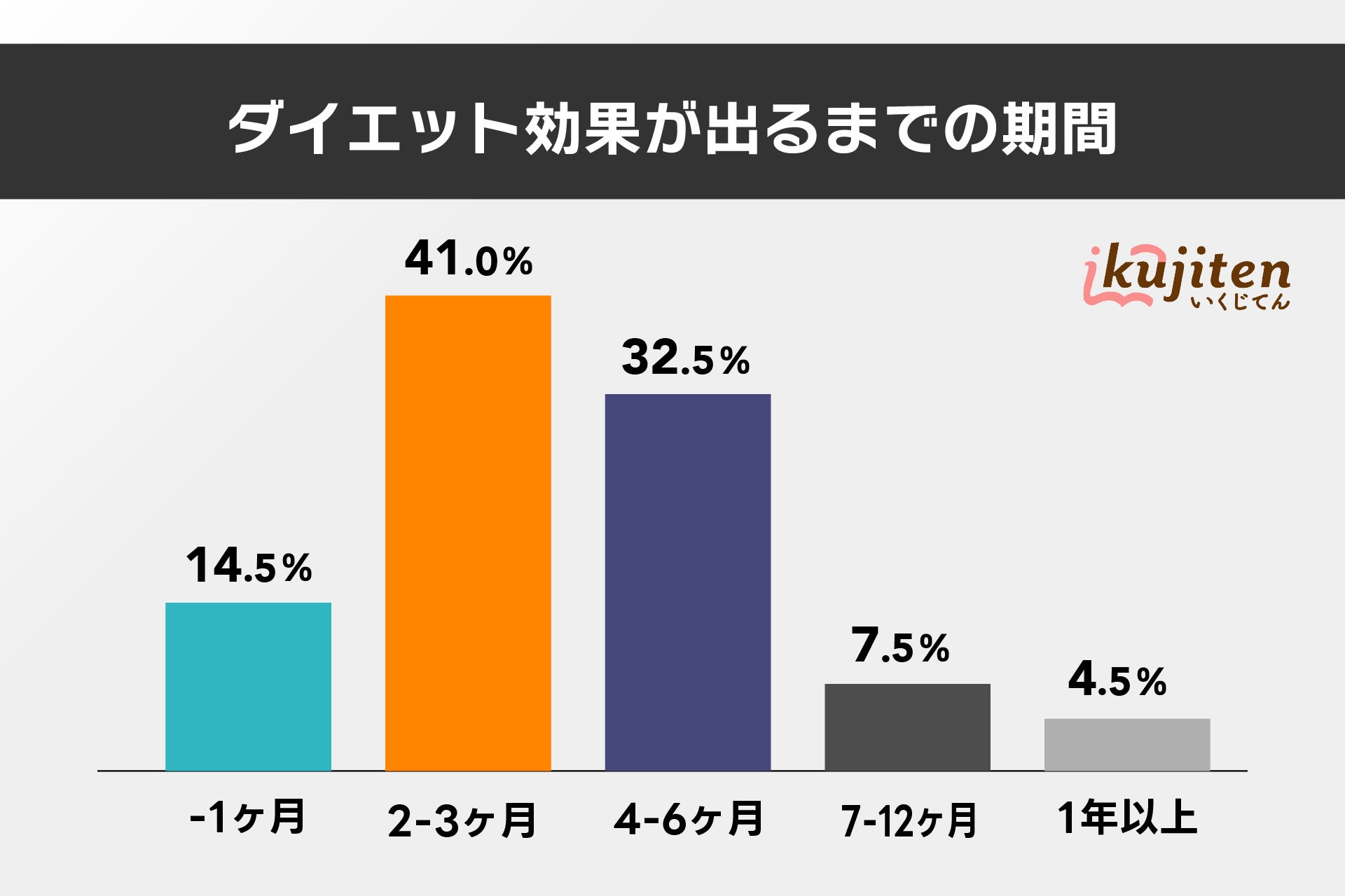 ダイエット効果が出るまでの期間については、1位が「2~3ヶ月」、次いで「4~6ヶ月」でした。