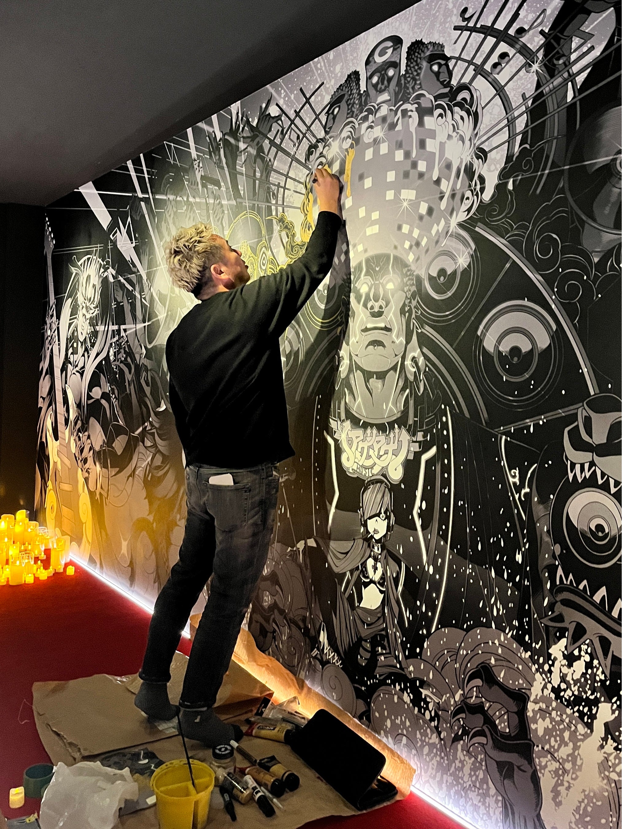 ギャラリー&カフェ「SEE?」1周年企画:壁や天井を埋め尽くすライブペインティングが進行中!人気クリエイター GODTAIL氏が手掛ける
