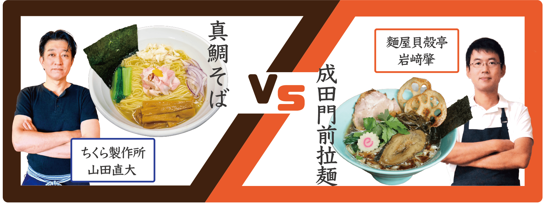 【イベント内容】「らーめん ちくら製作所」は真鯛そばを、「麵屋貝殻亭」は成田門前拉麺を提供します。両者1,000円(税込)で販売し、「スープ、麺、トッピング、全体のバランス」の項目でお客様から評価をいただき(各項目1~5点/QRコードから投票)、結果は翌日SNSで発表されます。