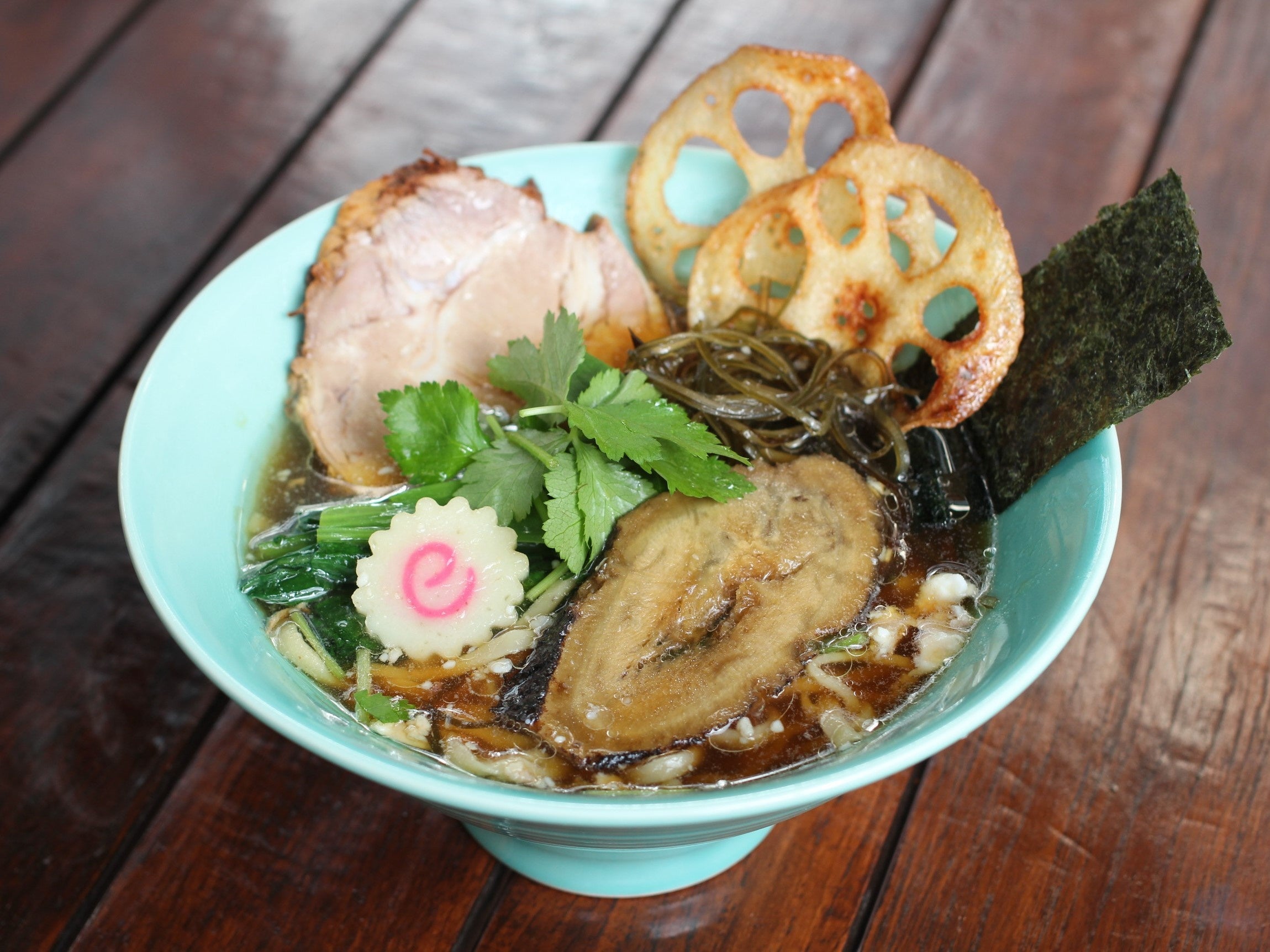 岩﨑氏は千葉県八千代市の「仏蘭西料理貝殻亭」などの飲食店を運営するなか、旨味成分の塊である「ラーメン」の魅力に取りつかれ自らラーメン道場に通った後、数々の拘りラーメンをリリース。やちよ道の駅食堂(千葉県八千代市/道の駅やちよ内)、牧の原テーブルレストラン(千葉県印西市/牧の原モア内)、成田門前食堂(千葉県成田市/なごみの米屋門前店内)などでラーメンを提供するほか、「麵屋貝殻亭」の屋号で地域イベントへのキッチンカー出店を行っています。