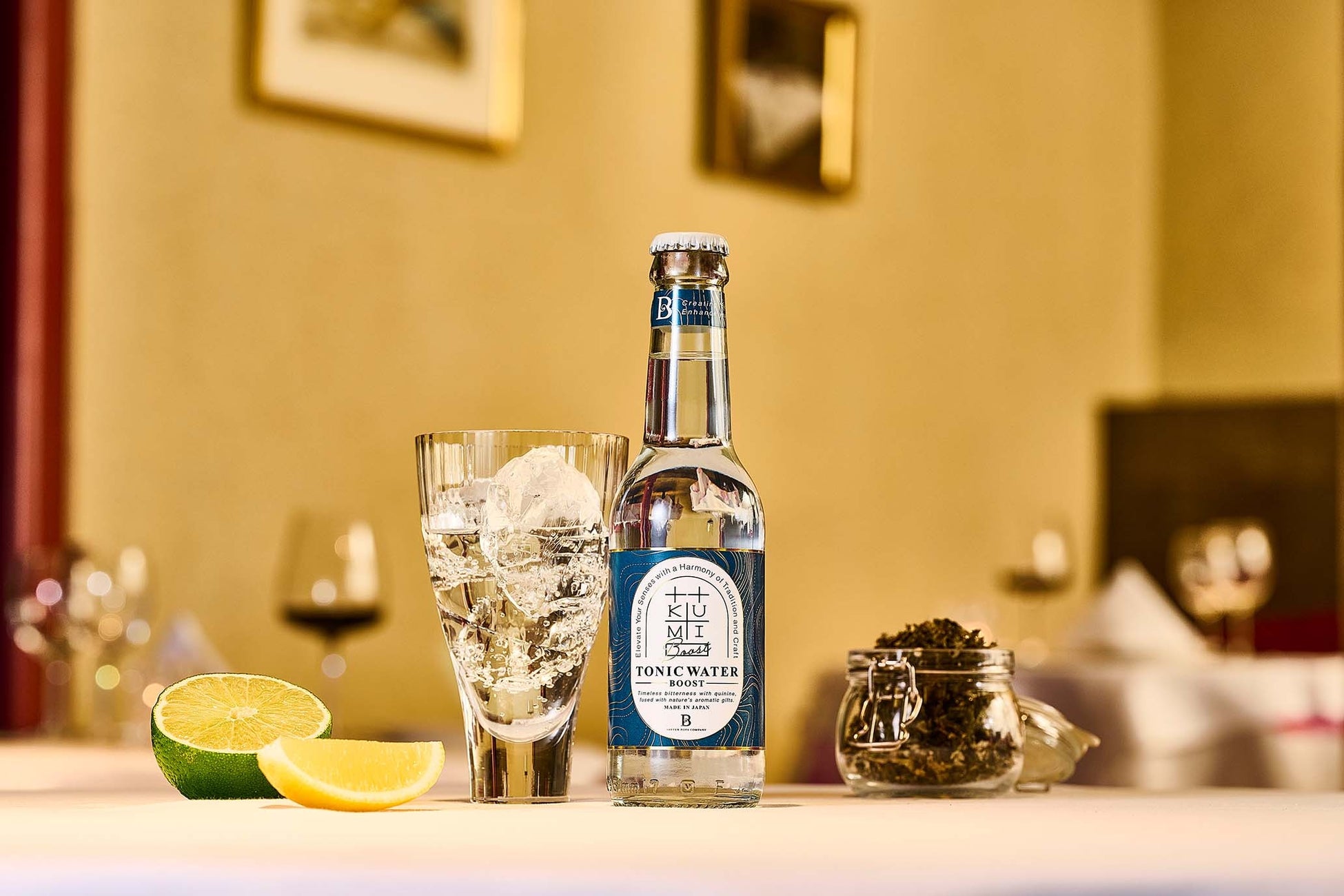 【KUMI BOOST】は、甘さが控えめ。代わりに、ワームウッド(ニガヨモギ)の香りが濃く感じられる、お酒好きな方向けのトニックです。BOOSTという名前は、ほかの炭酸飲料やソーダと合わせた際に、苦味を加え「さらに美味しく」「さらに楽しく」格上げ出来るところに由来しています。カクテルにもお使いいただけますので、しっかりとした苦味をお求めの方やリキュールがお好きな方にも楽しんでいただけることでしょう。