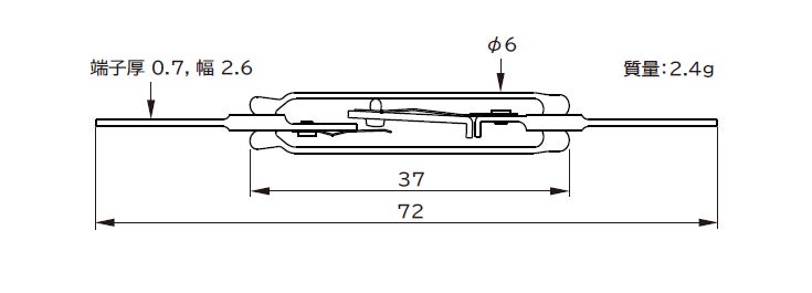 ・最大150Wの接点容量、絶縁抵抗10¹³Ω、他社比約18%サイズダウン (ガラス管長37mm)