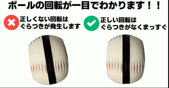 正しく回転できた場合はボールにぐらつきは発生せず、うまく回転ができていないとボールはぐらつきます。