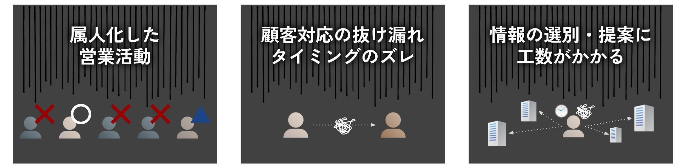 しかし従来の手法では営業担当者の負担が大きく、次のような『3つの課題』が浮き彫りになっていました。