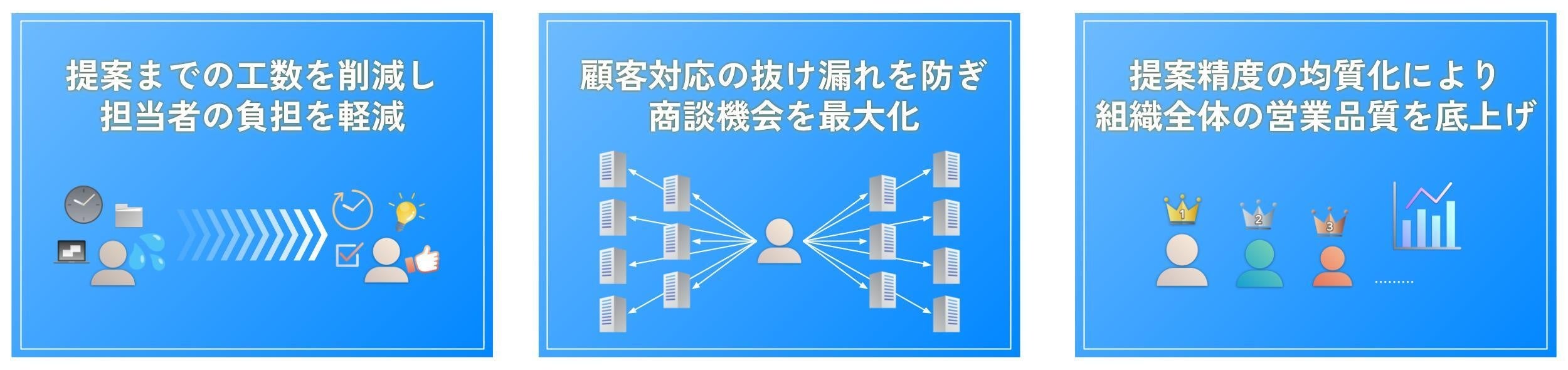 特に新人・若手営業担当者でも高品質な提案が可能となり、育成スピードの向上も期待できます。