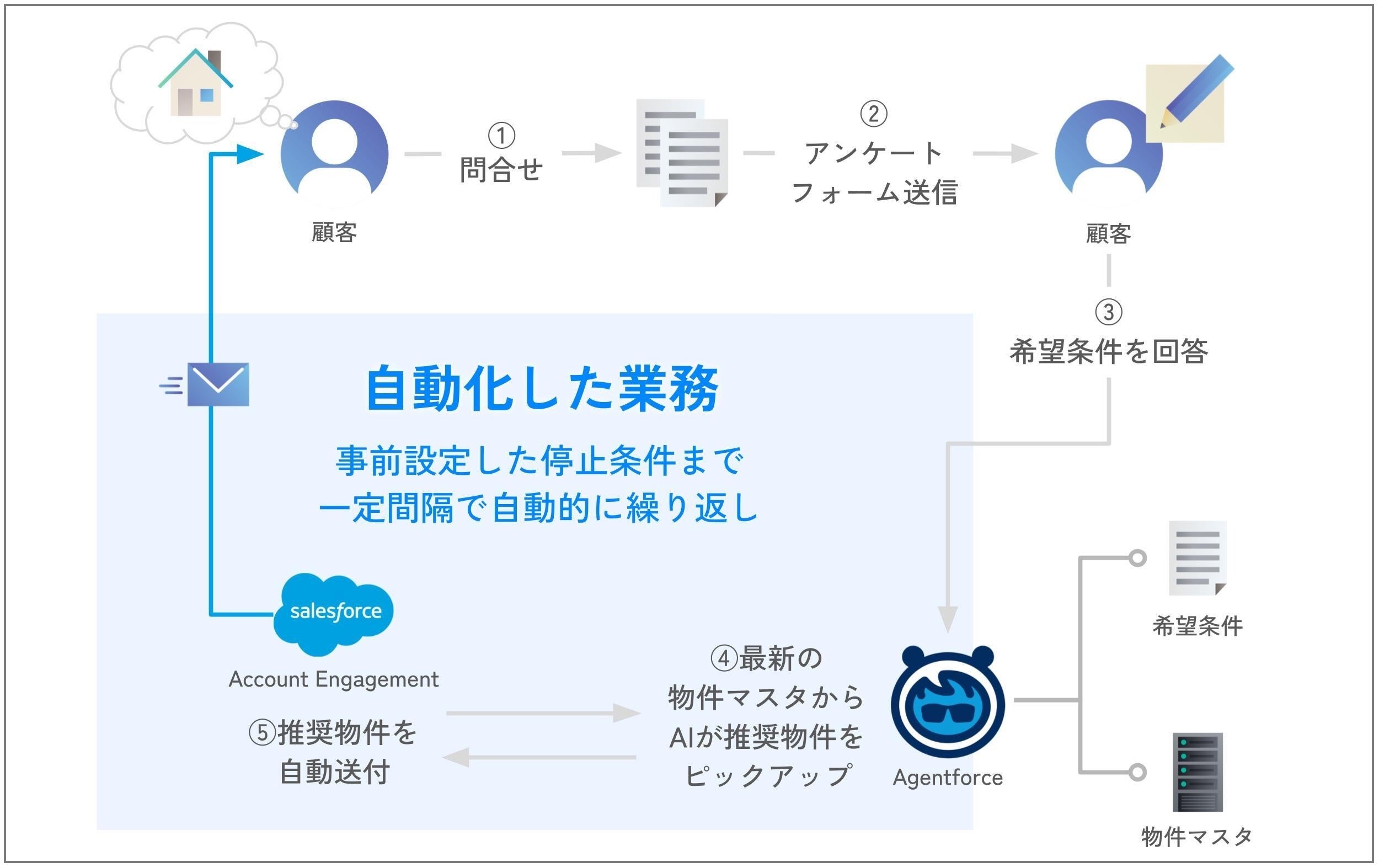 Account Engagementを活用し、一定期間後に自動で新しい物件を提案。