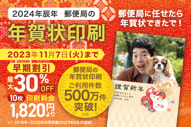 年賀状印刷は全部郵便局にお任せ!著名人作家や人気キャラクターデザインも多数!【ご利用件数500万件突破!】※1