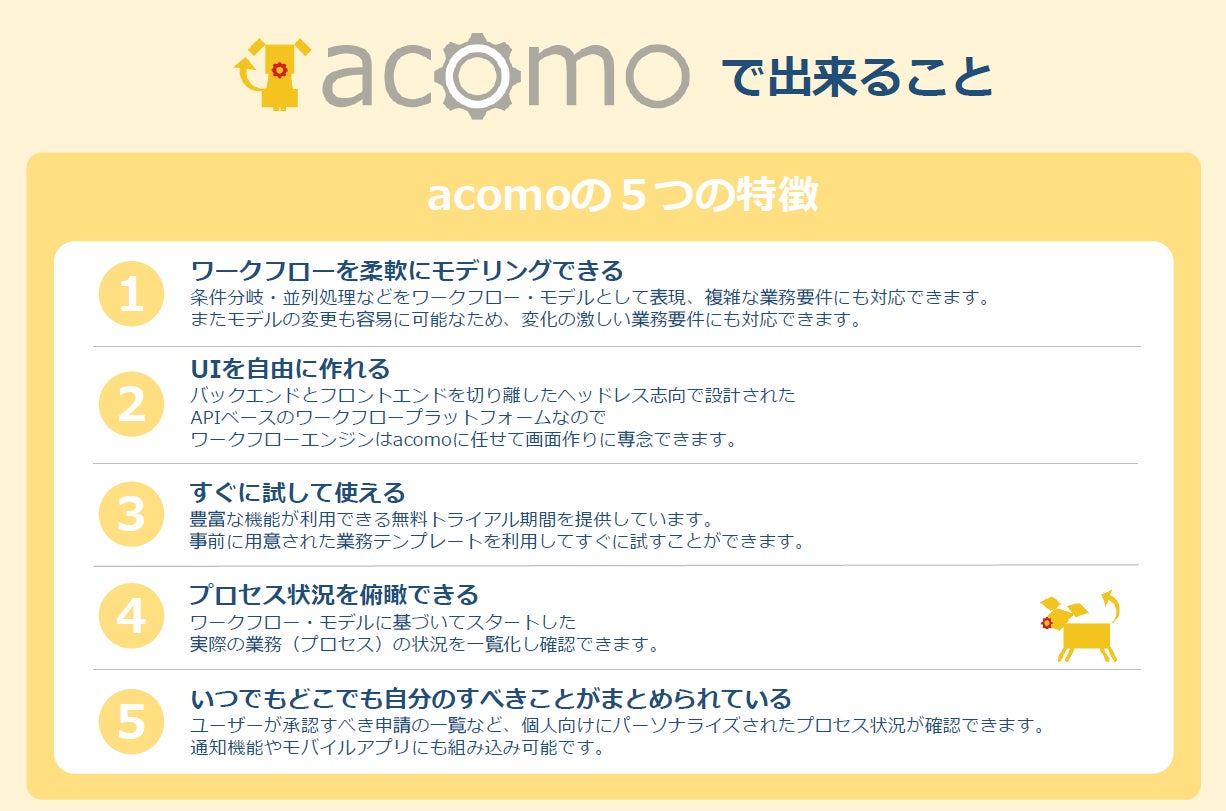 開発者が抱えるワークフロー開発の課題を解決!ワークフロープラットフォーム「acomo」(あこも)の提供開始