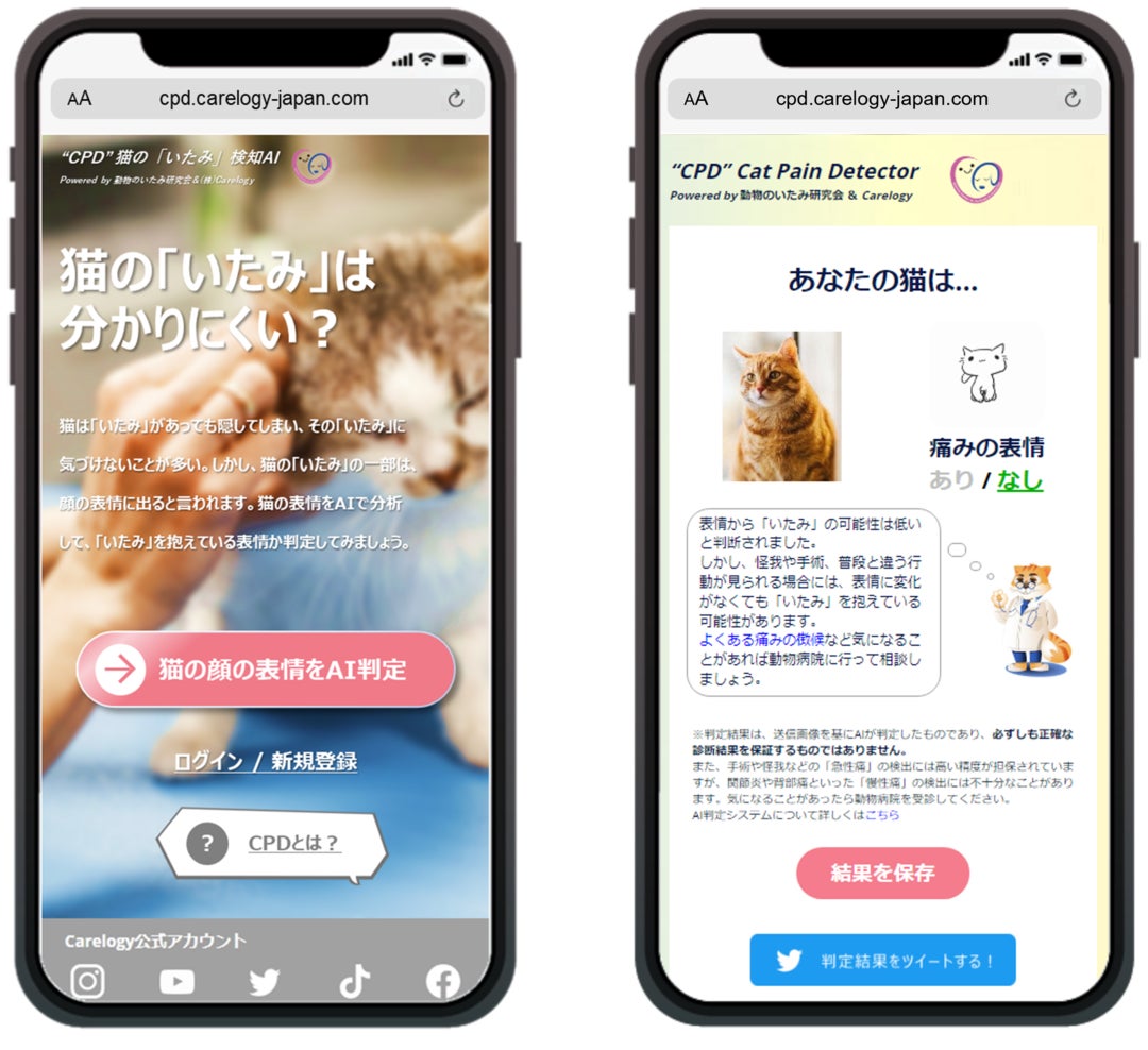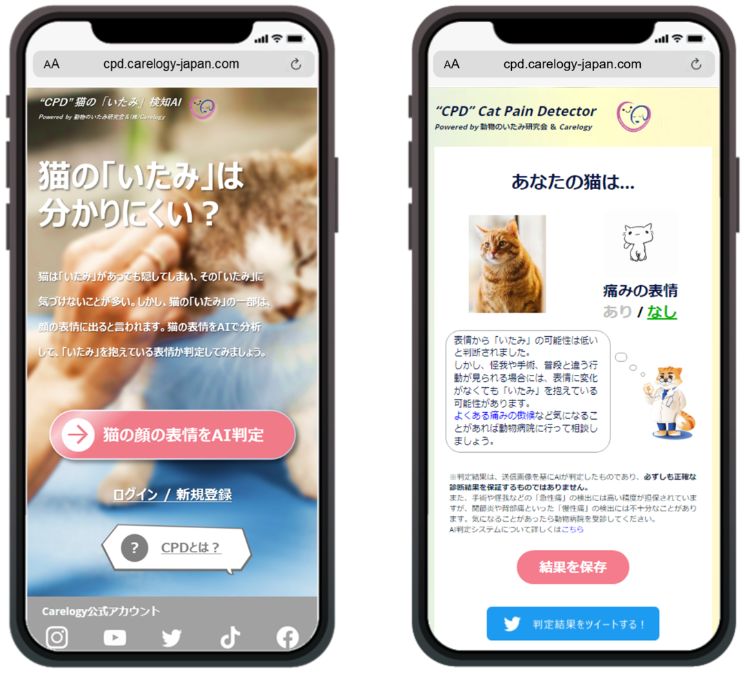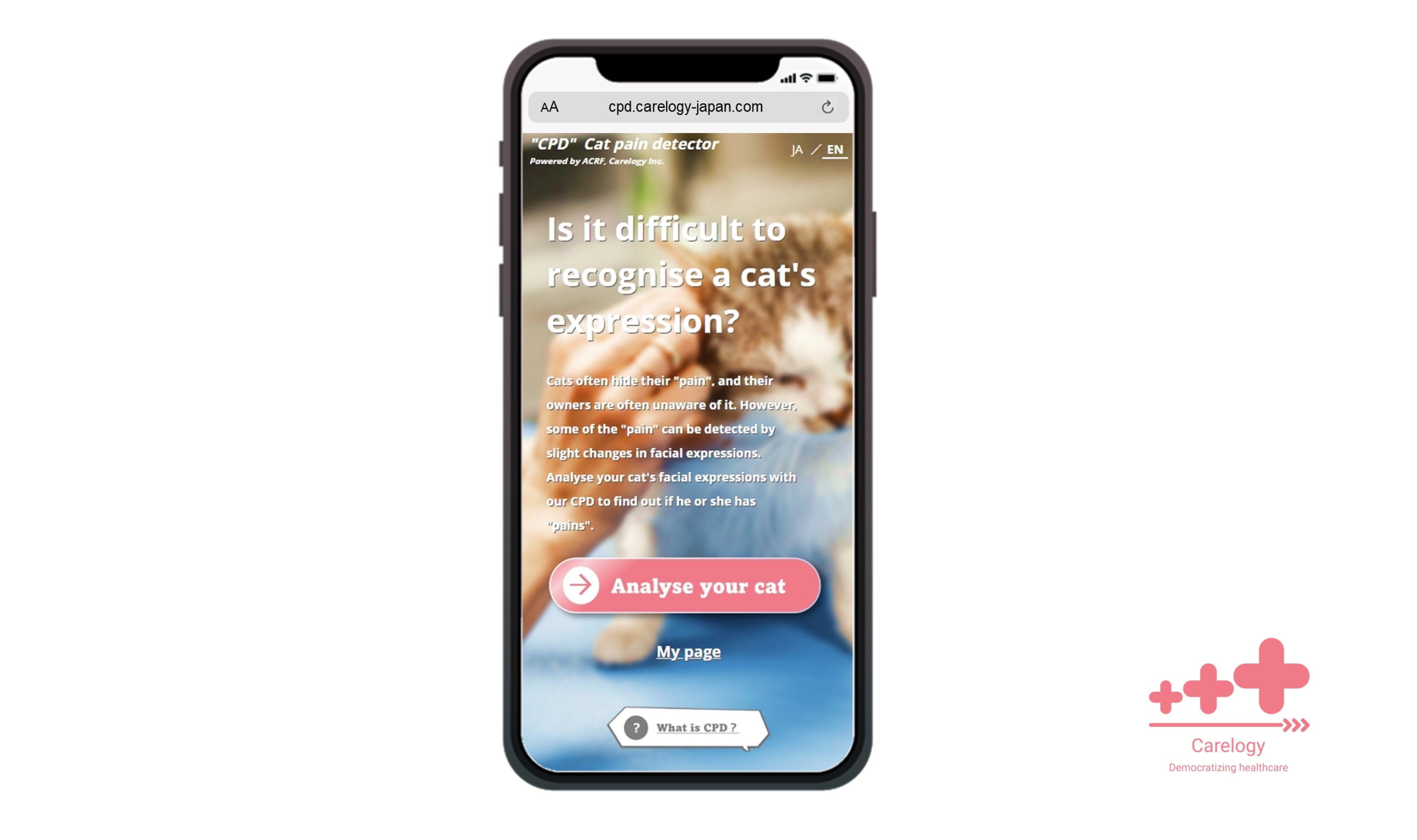 「CPD」とは、当社と日本大学生物資源科学部獣医学科との共同研究を通して開発された、猫の顔写真から痛みを抱えているかどうかが判定できるAIを搭載した無料のWebアプリです。