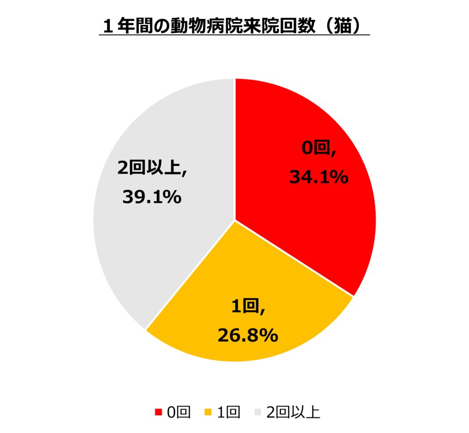 また、一般社団法人ペットフード協会が発行している『(令和3年)全国犬猫飼育実態調査』によると、猫の飼い主のうち約1/3は1年間で1度も動物病院に行っていないようです。