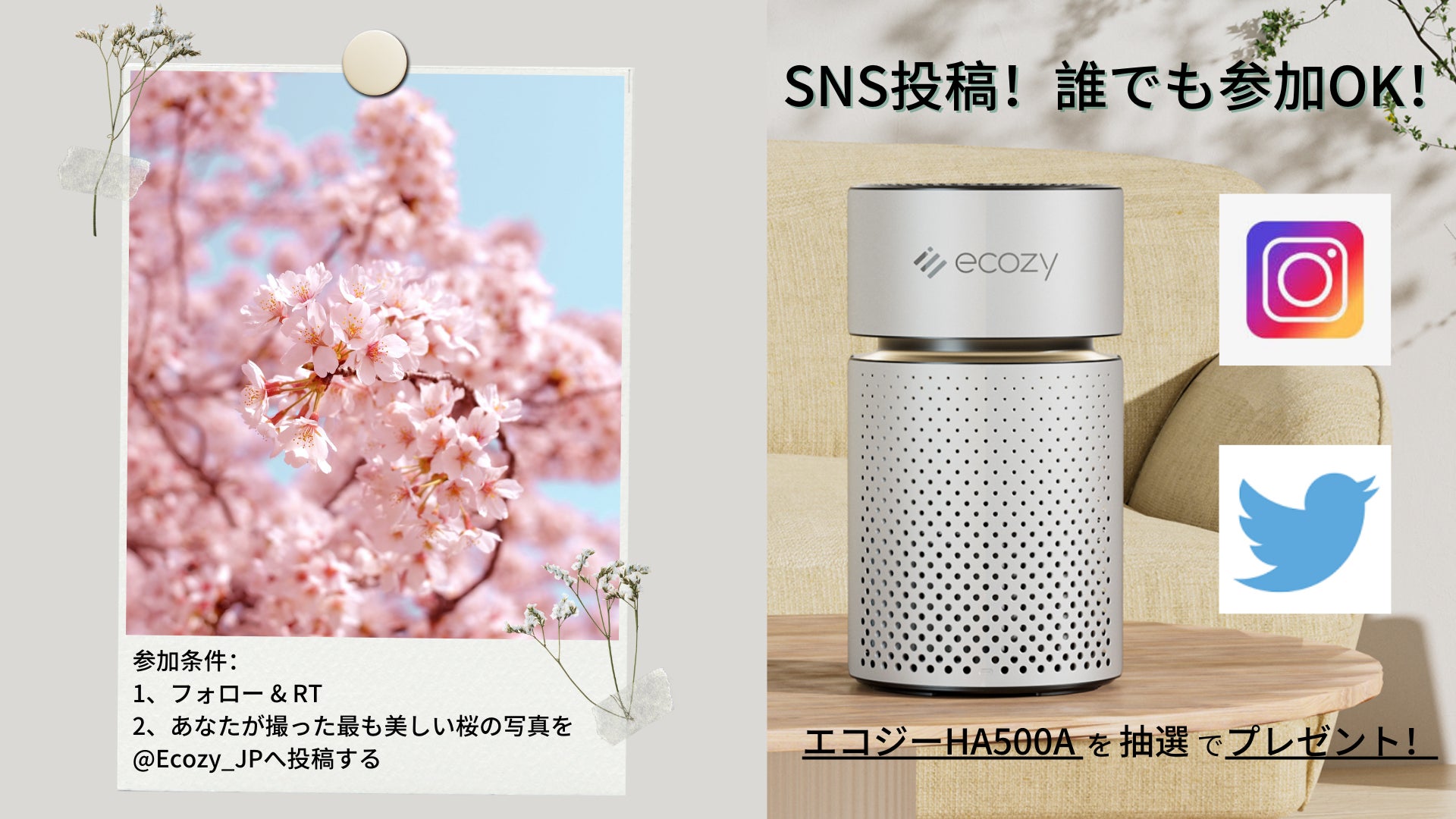 公式Instagram:抽選で1名様に、エコジーの最新の空気清浄機をプレゼント!