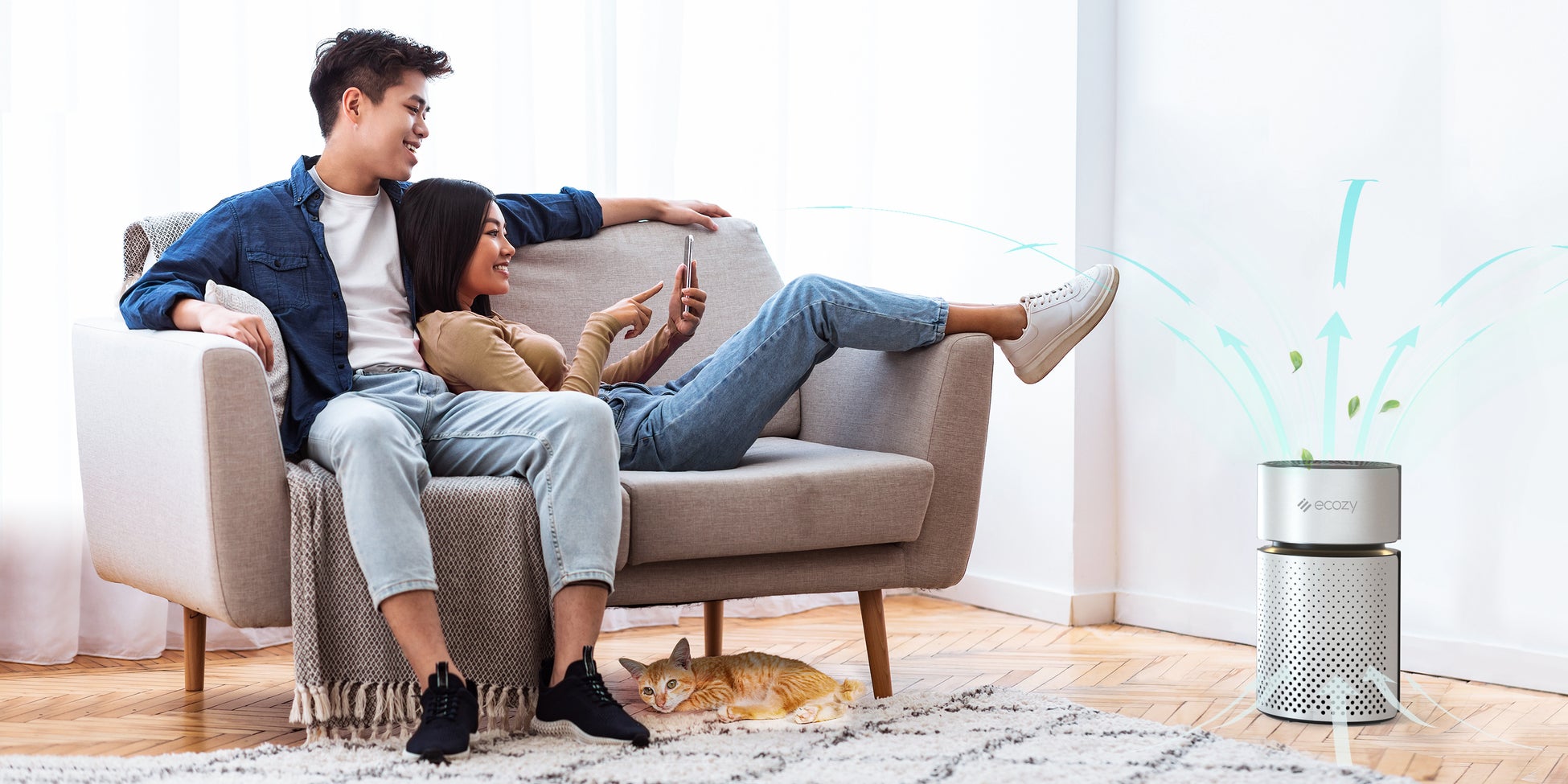 エコジーの空気清浄機は、花粉だけでなくPM2.5やニオイ、ウイルスなどもしっかり除去し家族やペットの健康を守ります。