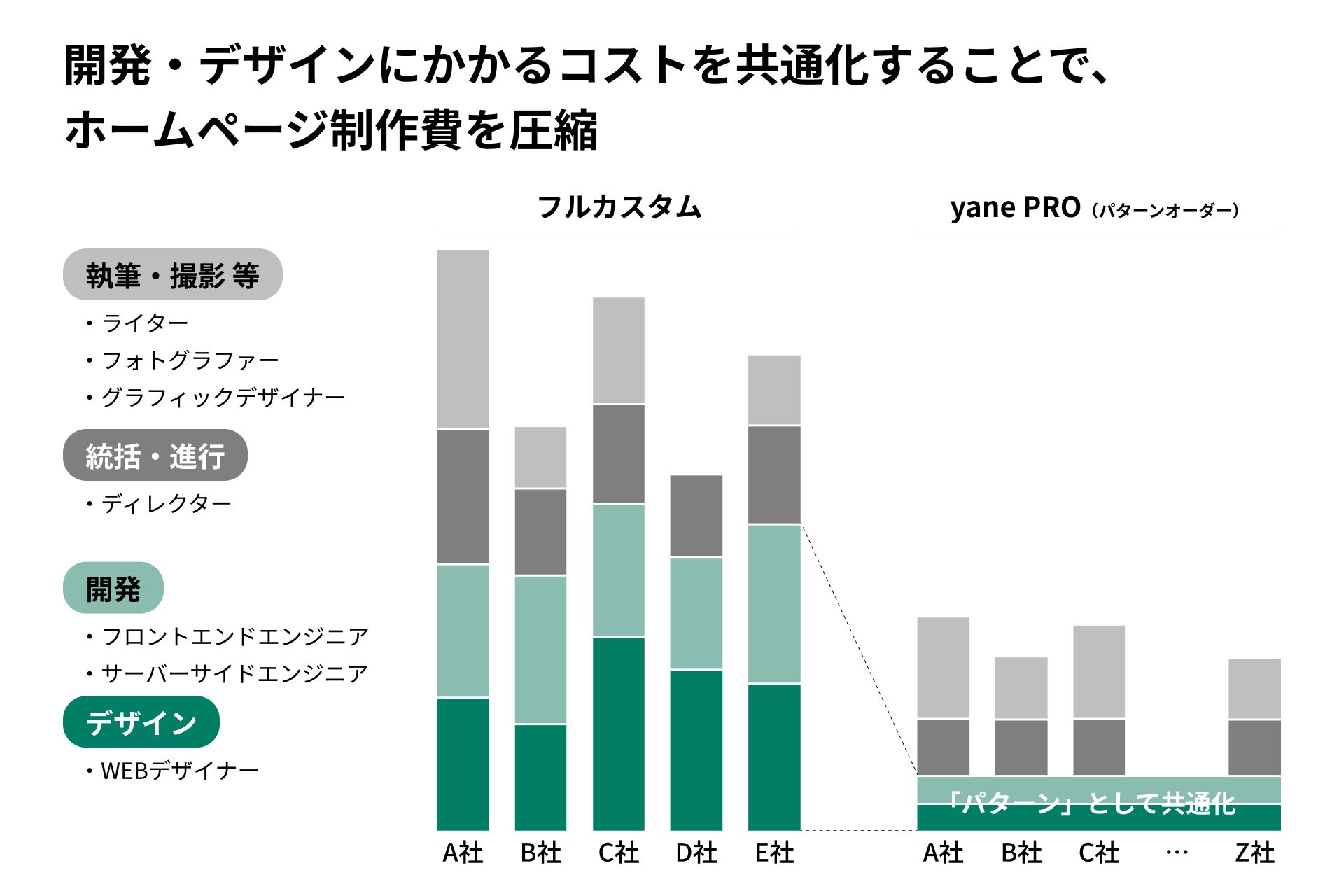 いわゆる「パターンオーダー」の形とすることで、サイト制作にかかるデザイナーやエンジニアの人件費を共有化しているので、制作費を抑えることができています。