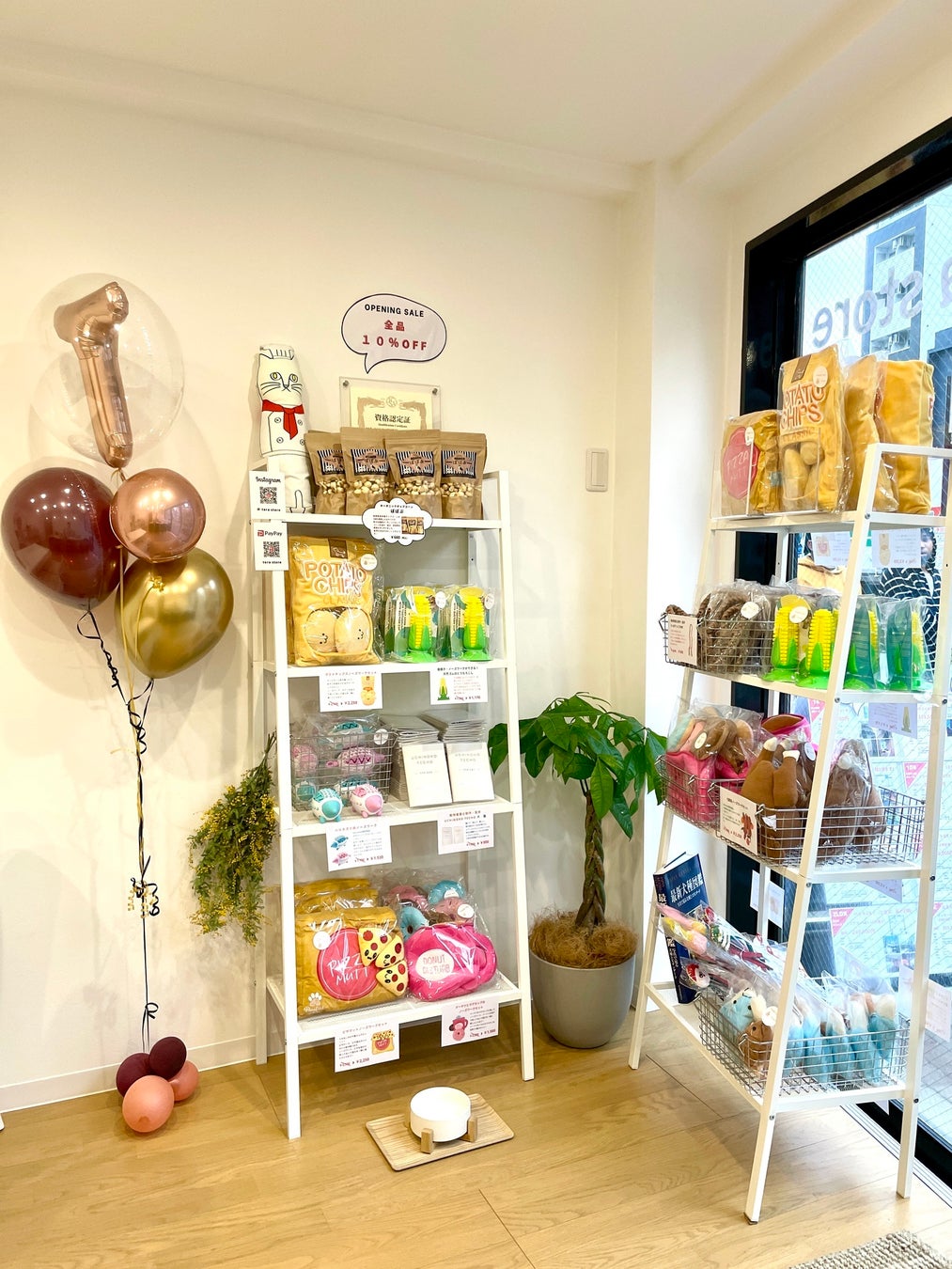 店内ペットOKの不動産屋さんにペットグッズやおやつが売っていたり、