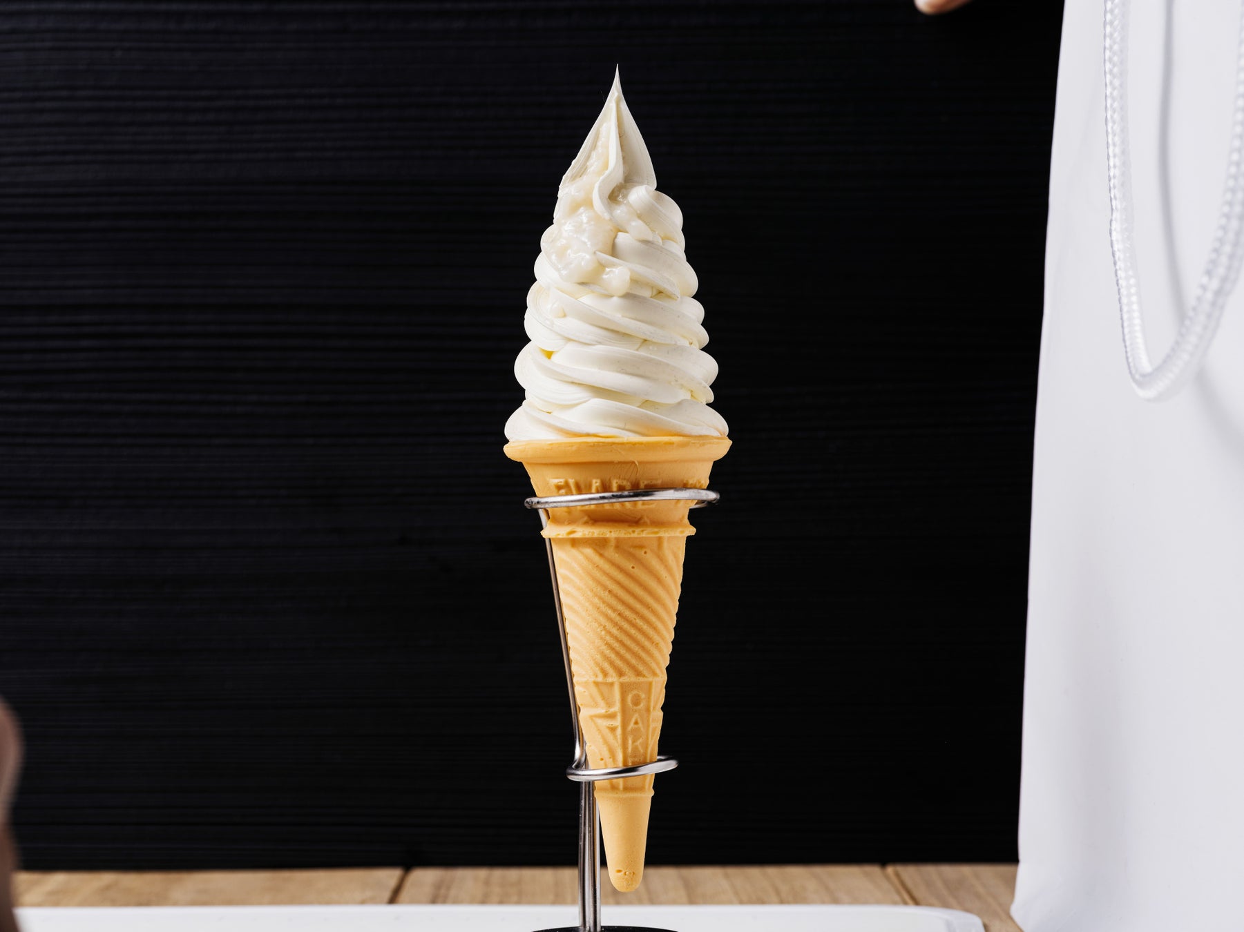地元の焼津コラボで実現した「生麹(こうじ)ソフトクリーム」は氷結晶が細かく極上のなめらか食感を実現。