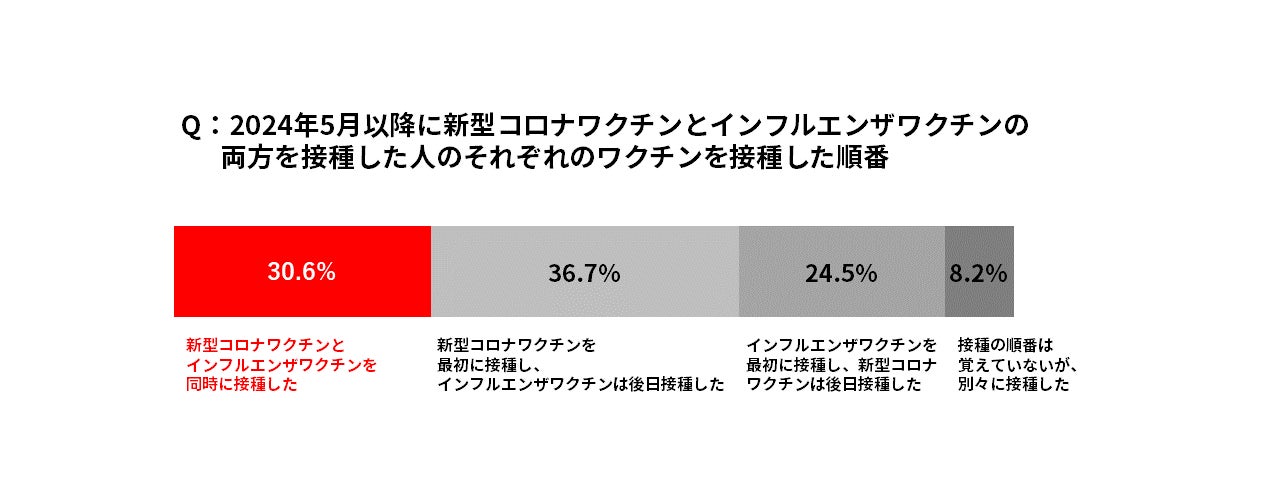 昨年2024年に新型コロナワクチンとインフルエンザワクチンの両方のワクチンを接種したシニア層のうち、30.6%が同時接種していました。