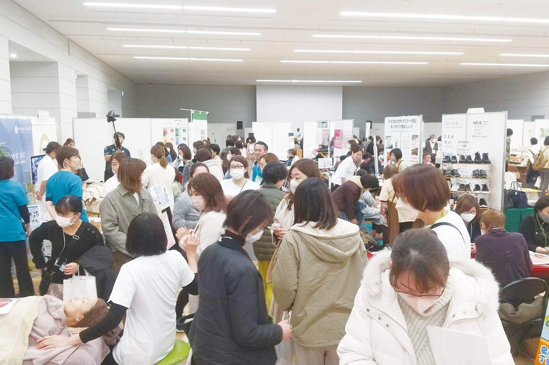 また、サロンやショップへの仕入れ、商品開発の相談など、出展各社との商談により、ビジネスの幅を広げることが可能です。さらに、マッサージや整体、占い、ヒーリングなどのブースでは、一流講師・セラピストの施術を受けることができます。