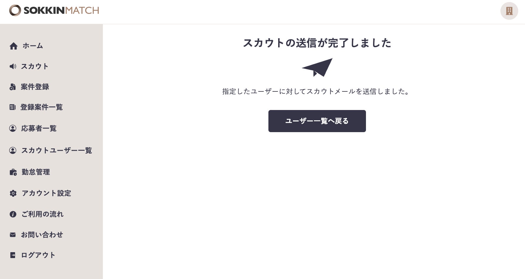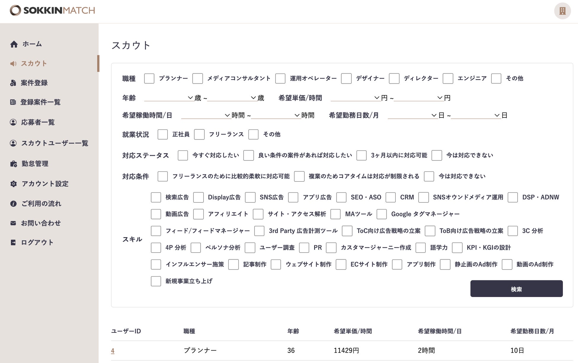 気になったプロ人材にはSOKKIN MATCH上で直接スカウトが可能です。