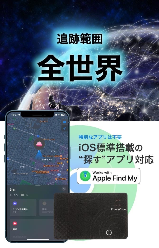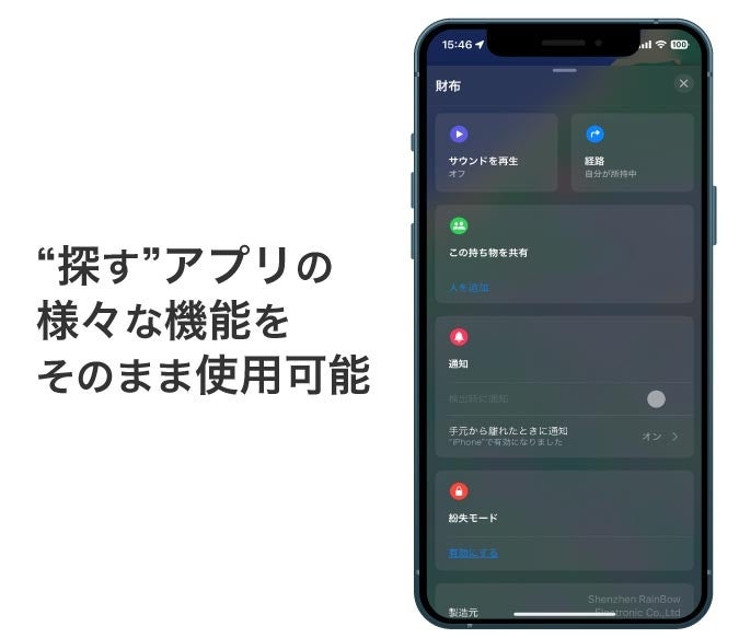 Apple社とのライセンス契約を結び、【探す】の機能をフル活用することができます。