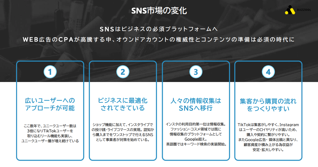 そうした流れから、今後は企業もビジネス領域でのSNS発信が重要となり、自社のSNSアカウントがホームページやLPの代わりになる時代の中で、自社でのアカウント運営を最大限のサポートをさせて頂きます。