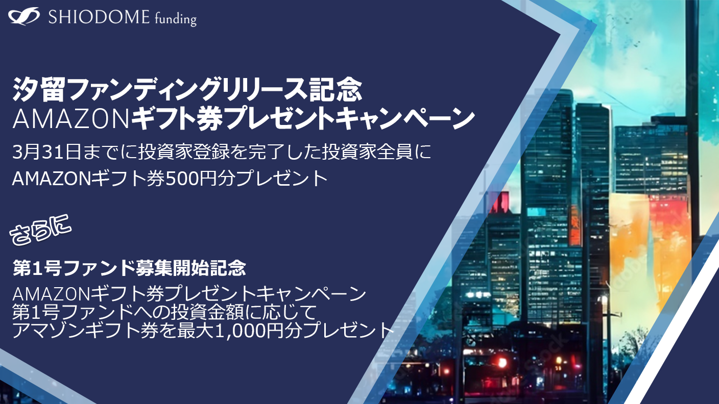 「汐留funding」投資家登録アマゾンギフト券プレゼントキャンペーンの実施と、第1号ファンドの募集予定のお知らせ