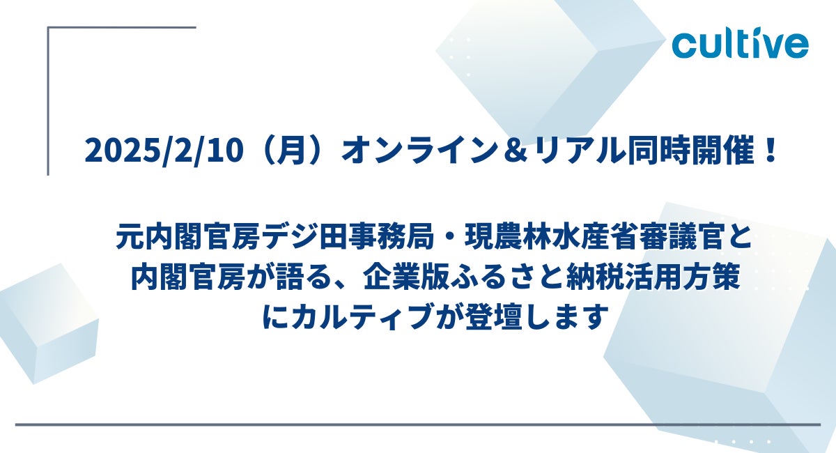 2/10(月)オンライン&リアル同時開催!元内閣官房デジ田事務局・現農林水産省 審議官と内閣官房が語る、企業版ふるさと納税活用方策