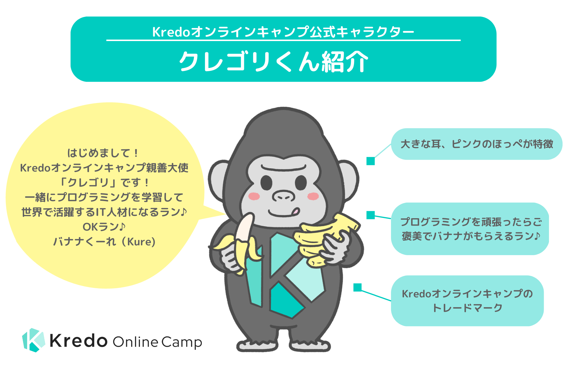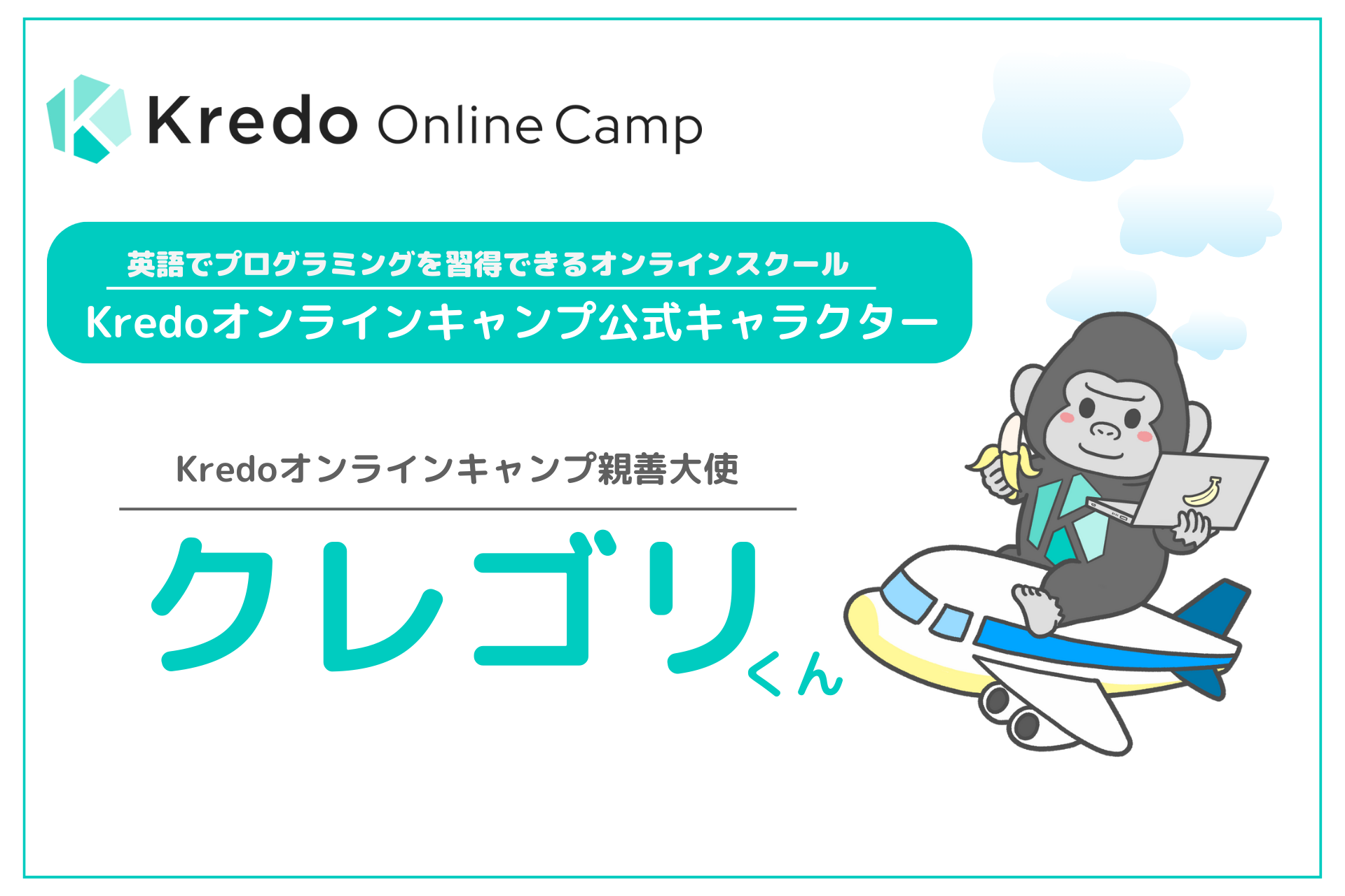 Kredo、英語でプログラミングを習得できるオンラインスクール「Kredoオンラインキャンプ」公式キャラクターに「クレゴリくん」が就任!