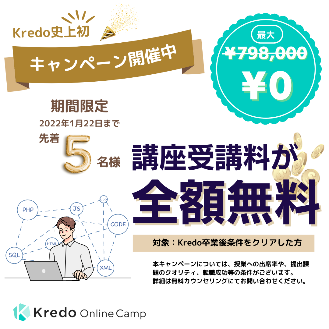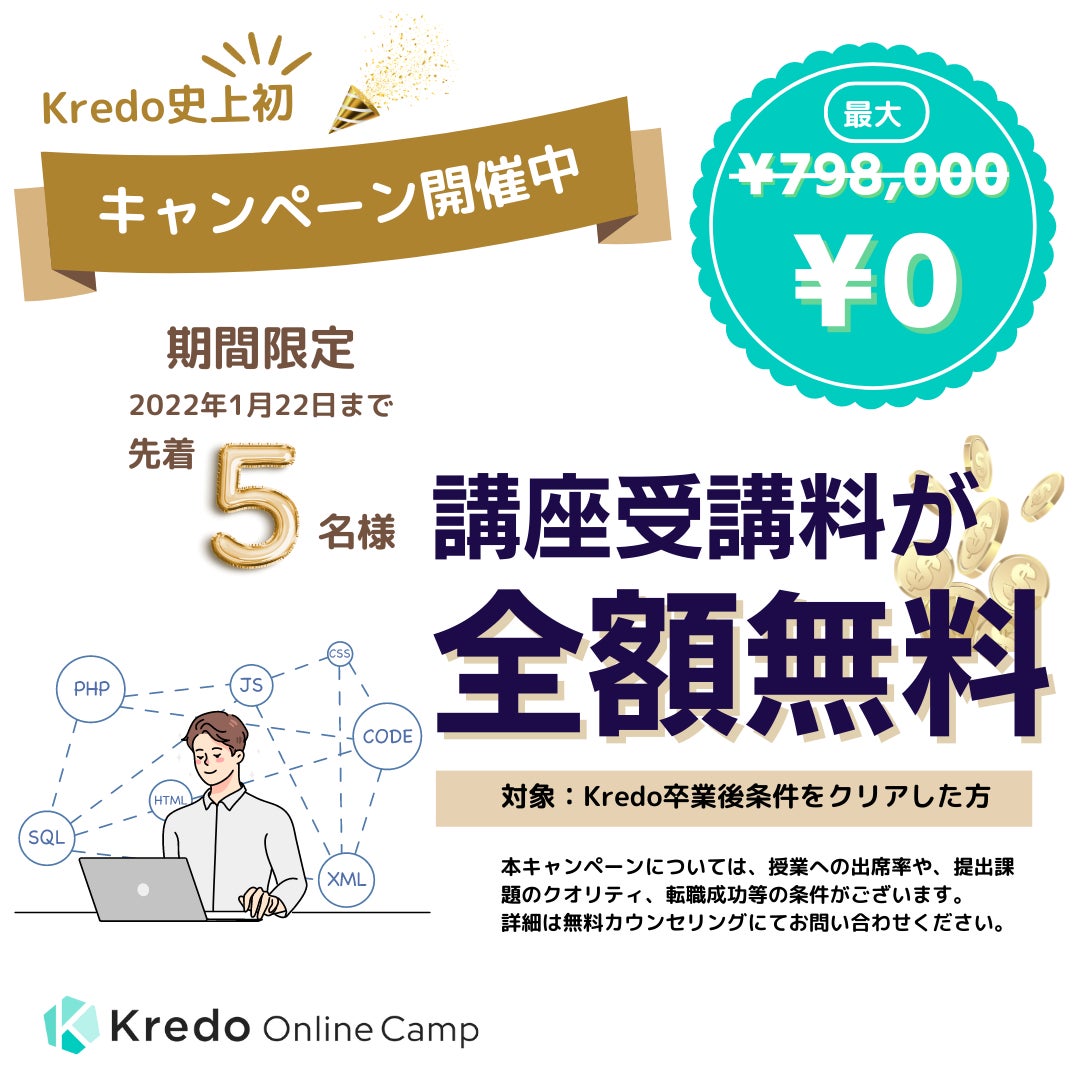 Kredo史上初「受講料全額キャッシュバックキャンペーン」を実施中です。