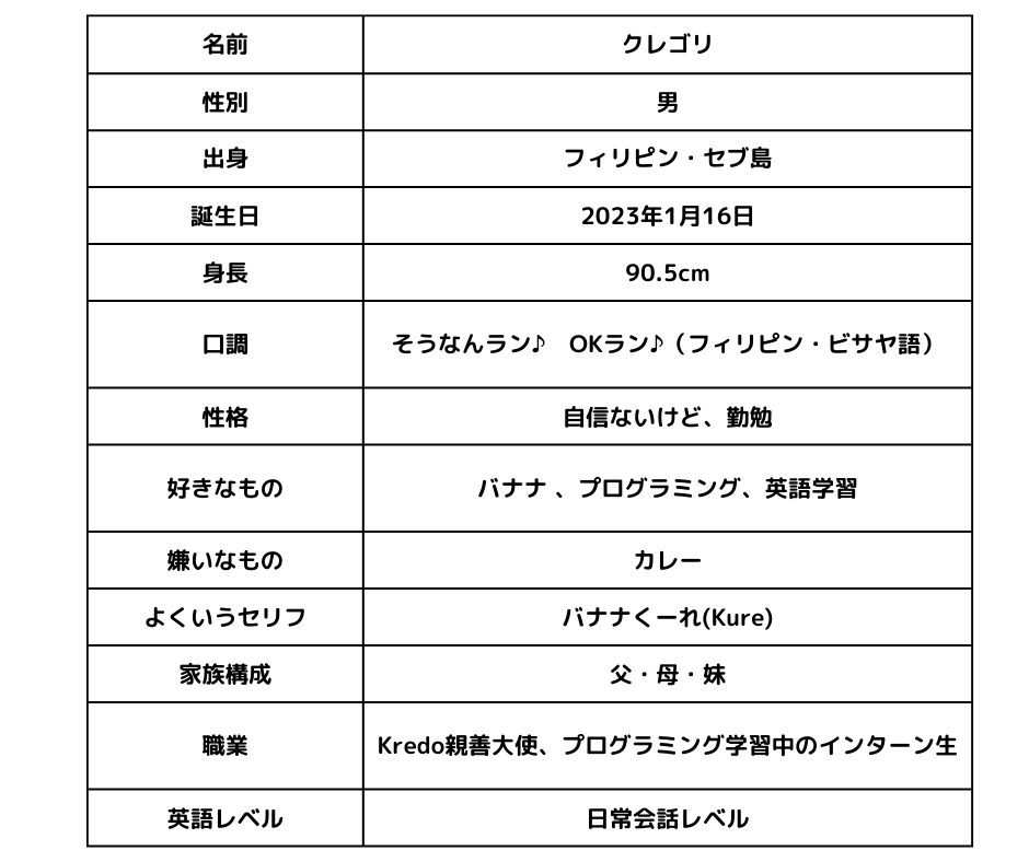 1,500名以上の卒業⽣を輩出、英語でプログラミングを学べるスクール「Kredoオンラインキャンプ」を運営している KREDO JAPAN株式会社(所在地:東京都新宿区 代表取締役CEO:横⽥猛夫 以下:Kredo)は、公式ブログやSNSの発信を通して、英語×プログラミングの必要性をもっと世の中に広めたいという想いから、数多くのMTGを重ね、Kredoオンラインキャンプ親善大使「クレゴリくん」が誕生いたしました。