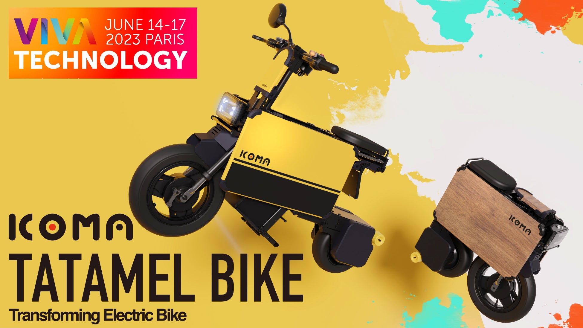 株式会社ICOMA inc.(本社:東京都中野区、代表取締役:生駒崇光)は、2023年6月14日から2023年6月17日にフランスパリで行われるオープンイノベーションの展示会である「Viva Technology2023」に出展いたします。展示ブースでは、CES 2023でイノベーションアワードを受賞した折りたたみ電動バイク『ICOMA TATAMEL BIKE(イコマ タタメルバイク)を展示。変形デモの実施や、実際に触れていただくことができるブースとなっております。皆様のご来場をお待ちしております。