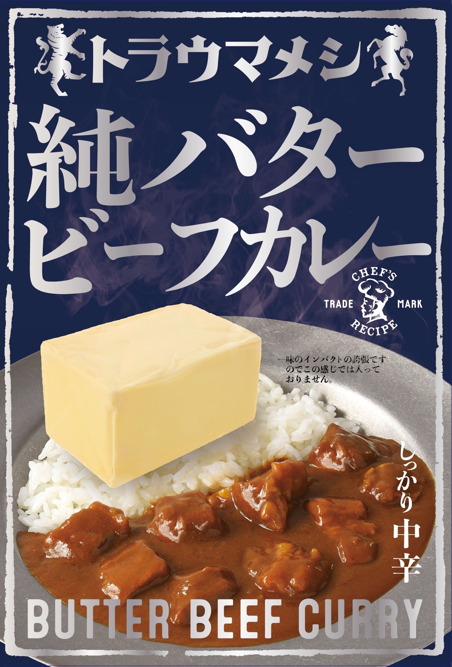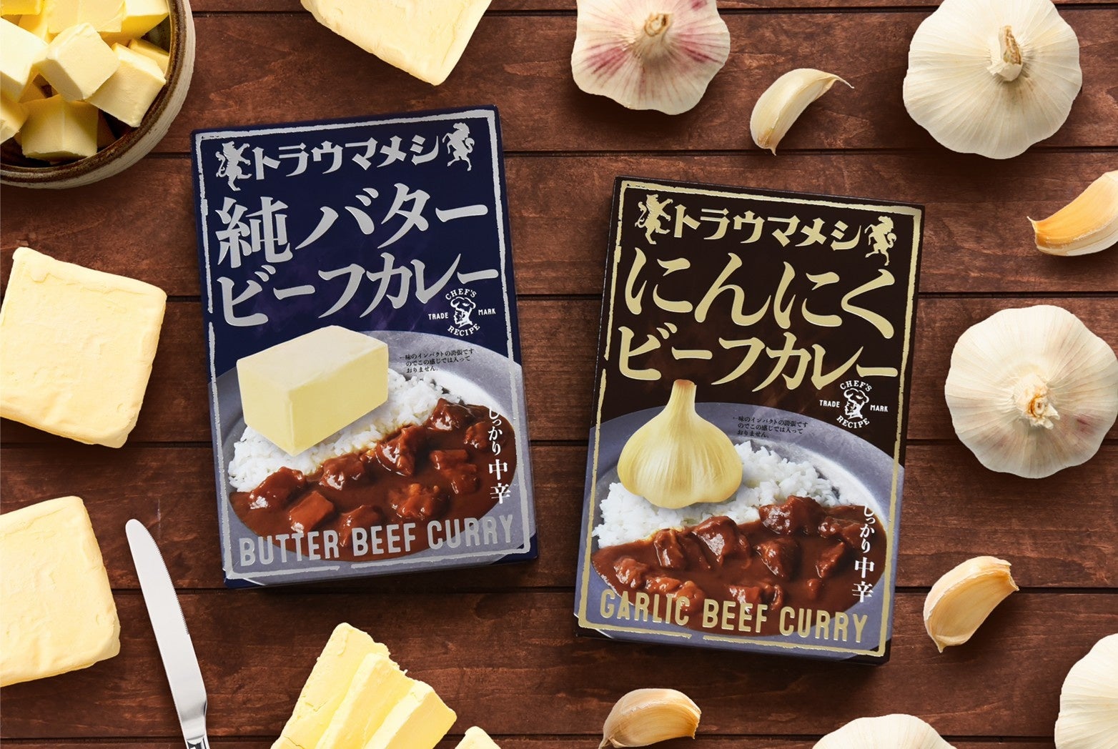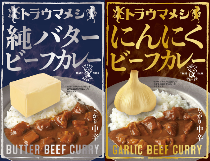 今回発売するのは「トラウマメシ 純バタービーフカレー」と「トラウマメシ にんにくビーフカレー」の2商品です。