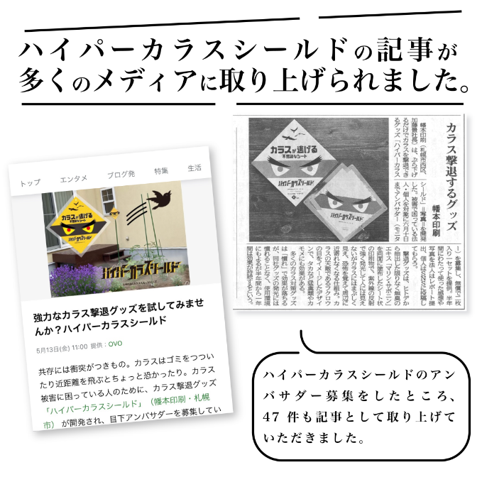 独自のバイオ技術で様々なカラス忌避製品を開発、販売している北海道環境バイオセクターと共同開発し、ハイパーカラスシールドの製品化に成功しました。