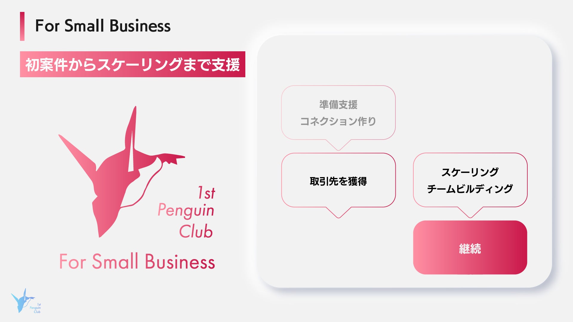 初案件からスケーリングまでの支援を行い、継続的なビジネスの成長をサポートします。