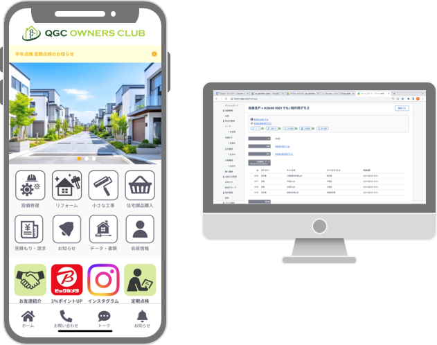 QGCコネクトは、一般的な施工管理システムと異なり、QGC会員様と住宅オーナーとの長期的な関係構築によるアフター領域事業の確立、「生涯顧客化」を目的としています。