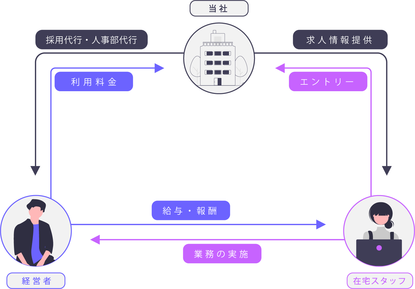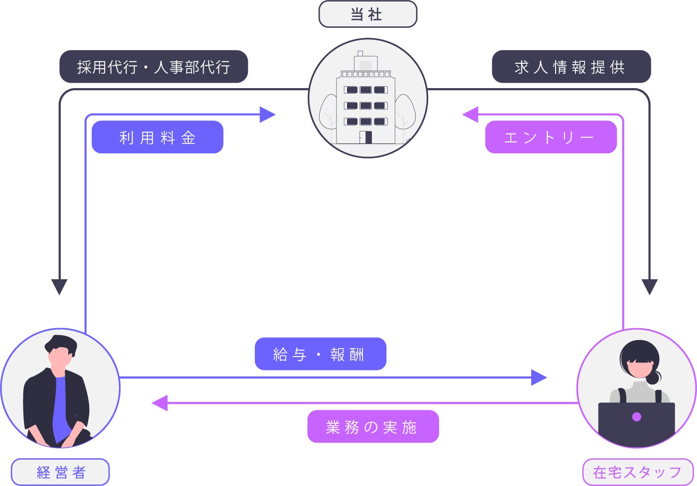 経営者様の会社の人事部であるかのように、求人や採用、採用後の在宅スタッフのスキルアップ(Off JT)ご支援、在宅秘書のカウンセリング、離職を防ぐためのサポート、在宅勤務に必要な各種マニュアルの提供、人事評価制度・給与制度等のつくり方等のノウハウを共有させていただきます。