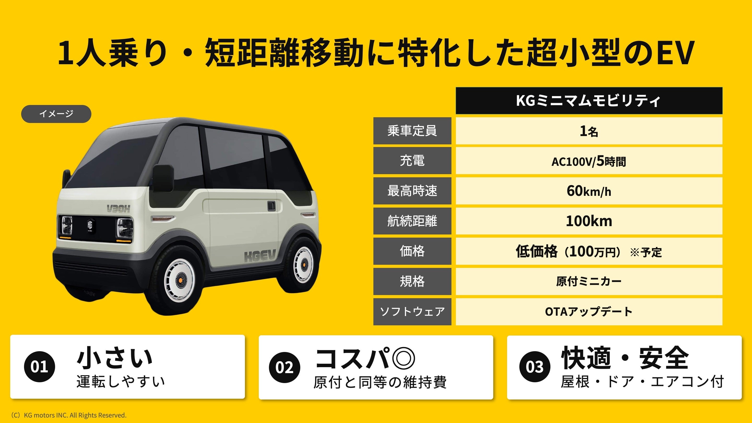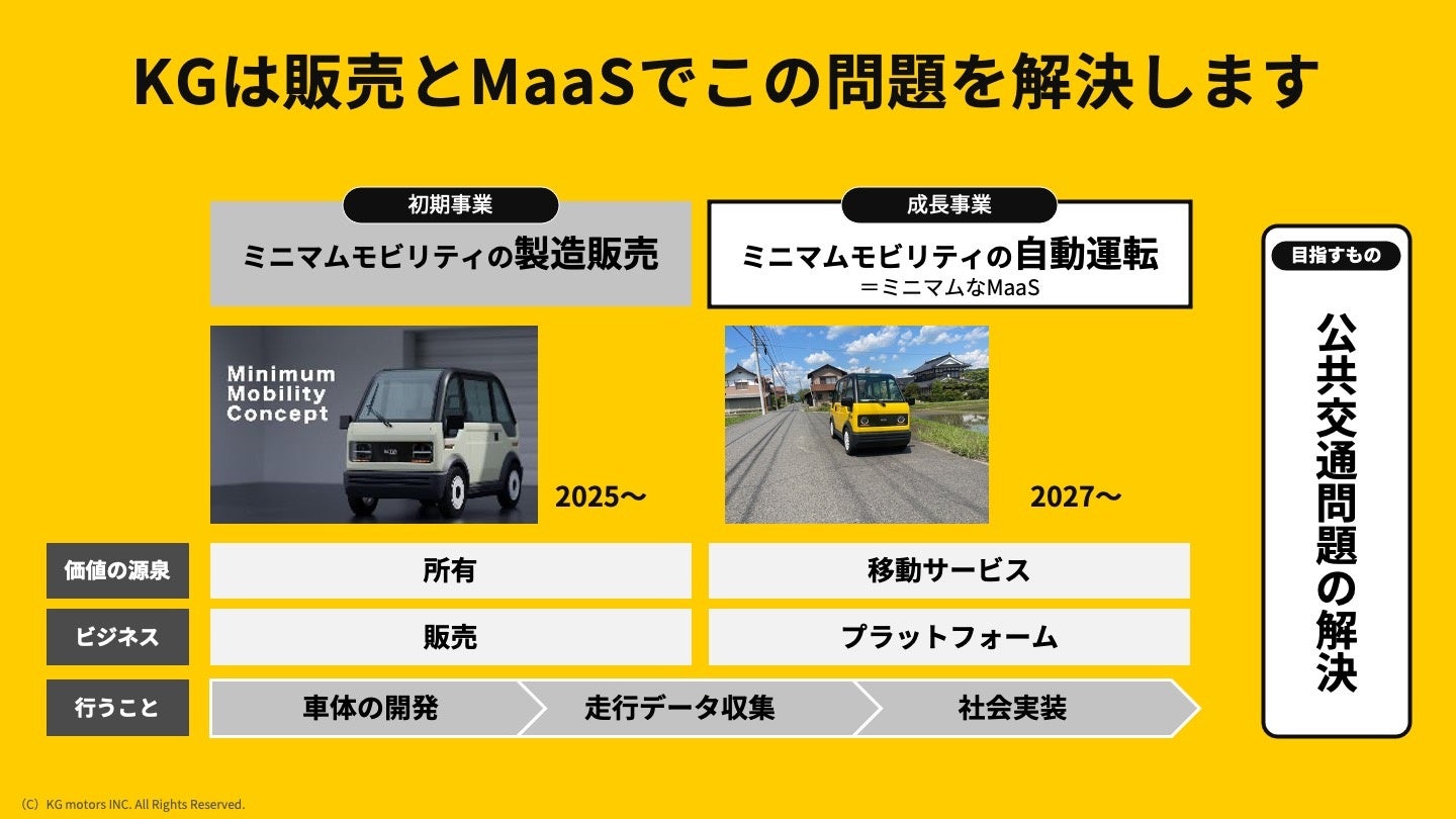 今回、不安定な市況の中でも資金調達が実現できたことは、我々KGモーターズの描く超小型モビリティの可能性をご評価いただけた結果だと考えており、大変嬉しく思っております。