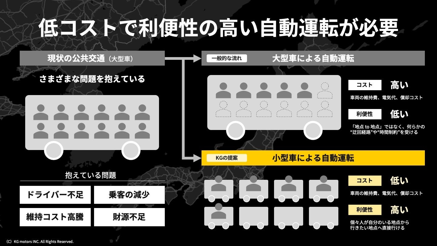 KGモーターズが掲げる「小型モビリティで世界を「ワクワク」させる」ビジョンに共感したことが、出資を決断した最大の要因です。同時に、地方の交通問題や、二酸化炭素排出量の削減といった社会課題の解決につながるため、弊社としても取り組む意義が十分にあると考えています。