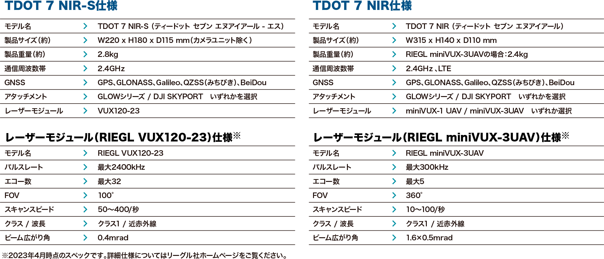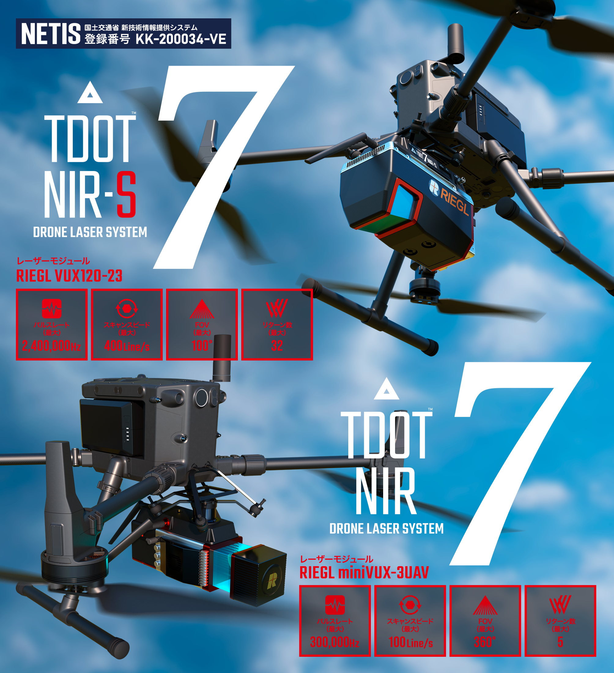 リーグル社製レーザーモジュール「VUX120-23」を搭載した「TDOT 7 NIR-S」と「miniVUX-3UAV」を搭載した「TDOT 7 NIR」の2機種の販売を開始しました。