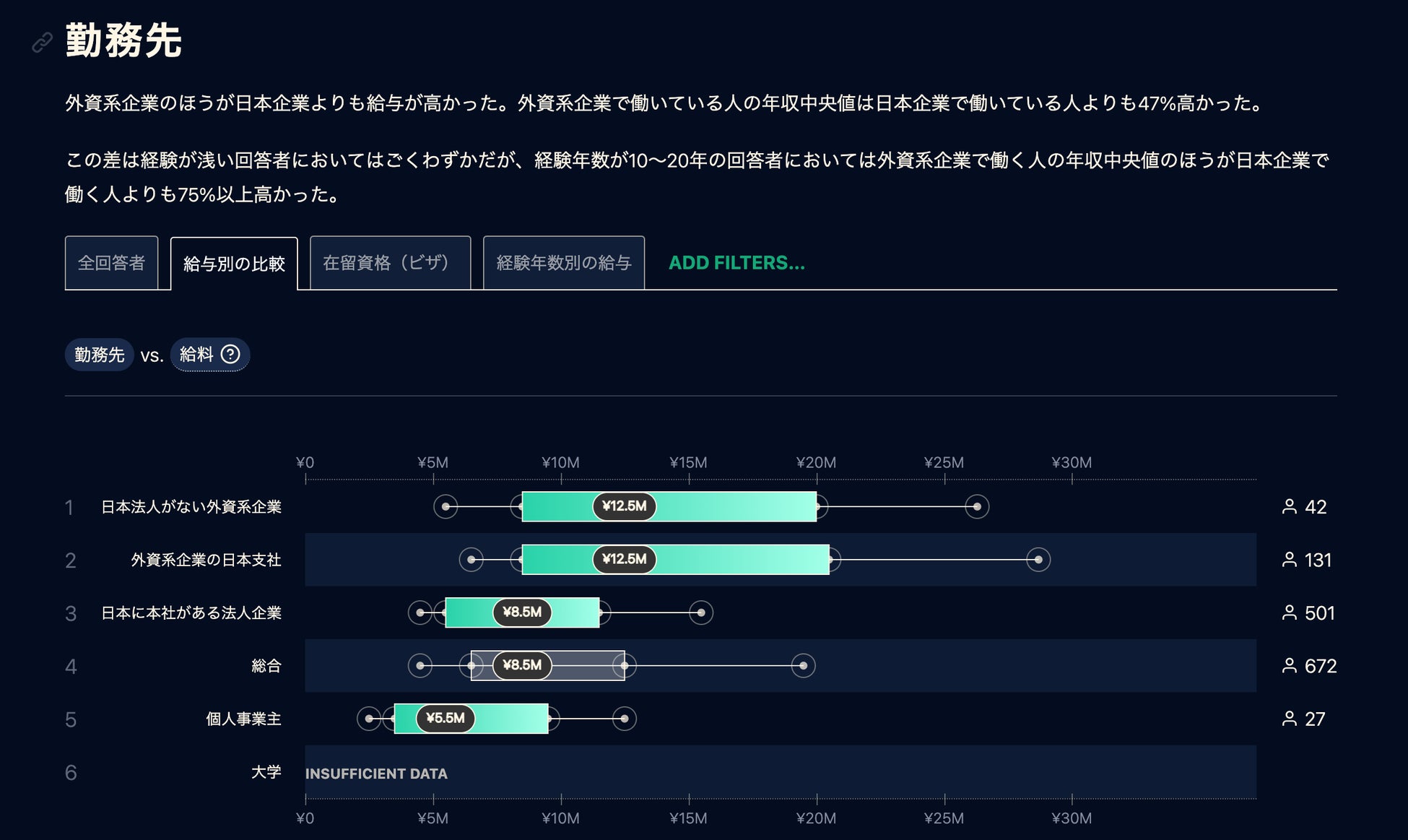 ・外資系企業で働くエンジニアの年収中央値は日本企業よりも47%高い結果に(2023年の73%からは差が縮小)