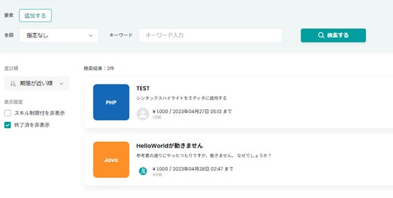 依頼者は、自分がわからないことや困っていることを質問し、受注者であるプログラミング知識豊富なエンジニアが回答することでマッチングが実現します。