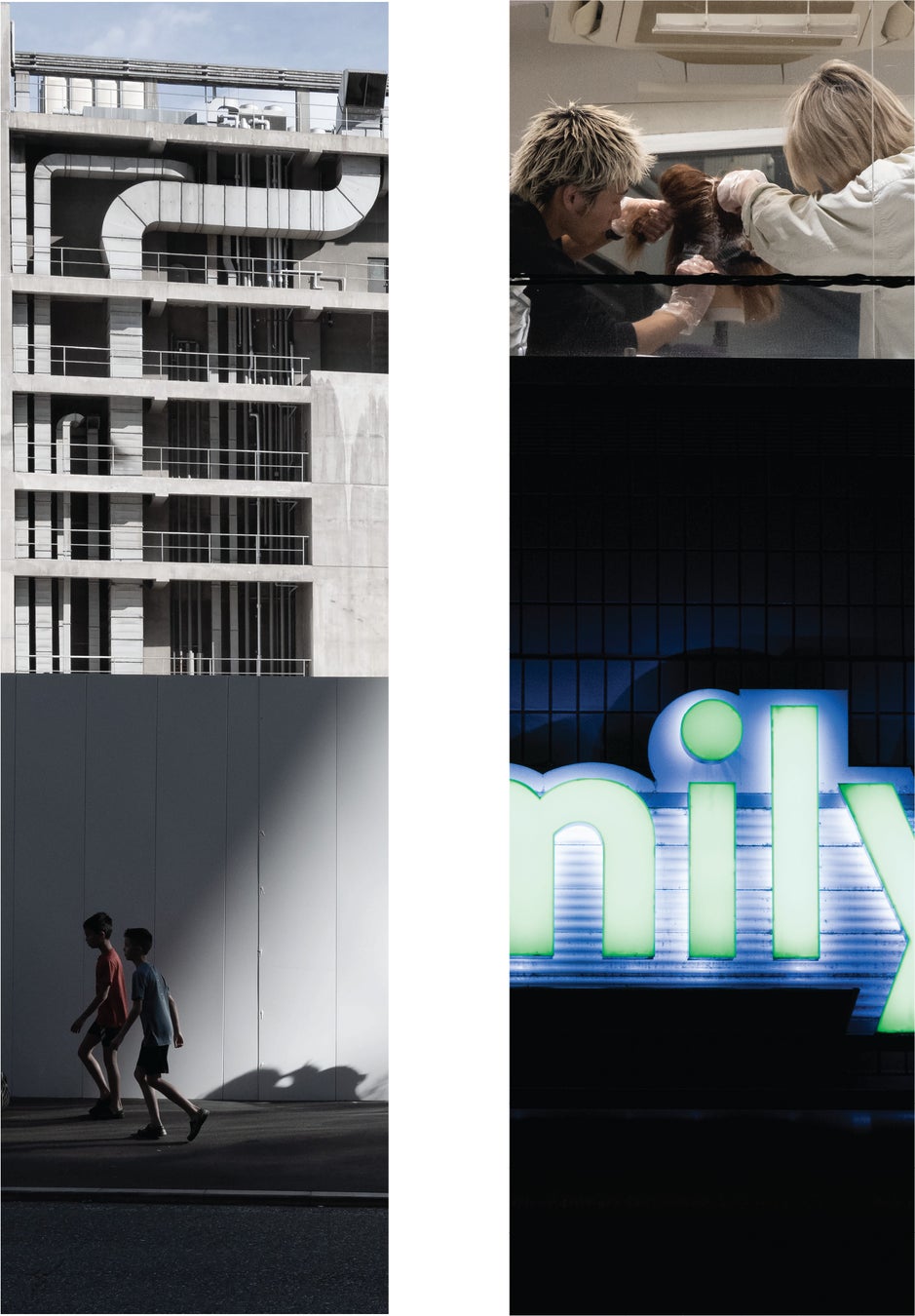 ”寺に隣接する墓地からはその塀ごしに墓⽯とほぼ同じ形状のビルを⽬にしたり、あるいは繁華街の雑居ビルの裏側で、太陽光が反射して輝くオフィスビルを背景に薄暗い窪んだ共同墓地が広がるという奇妙な光景に遭遇することもあります。このように東京は構築物によって⽣と死の共存を確認できる場所ともいえます。”