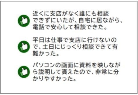 お客さまのライフスタイルが多様化する中、リモートでのご相談ニーズの高まりを背景に、多くのお客さまのご相談を承り、ご好評のお声をいただいております。