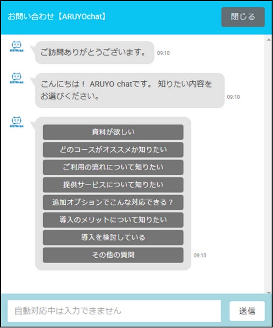 有人対応と自動応答ハイブリッド型チャットサービス「ARUYO chat」のサービスを開始しました。